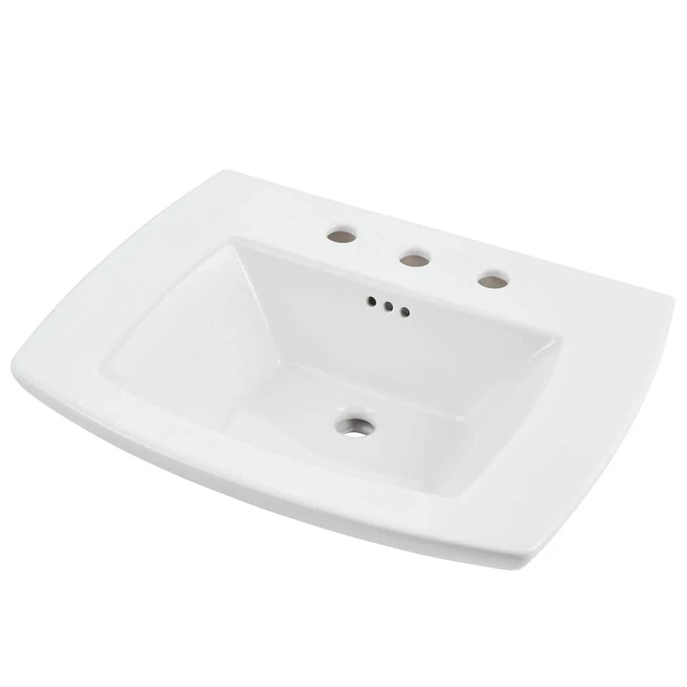 The Edgemere Console Table Top from American Standard has a transitional design that will complement any bathroom. The Edgemere Console Table Top pairs perfectly with the Edgemere Pedestal Bathroom sinks and the Edgemere Pedestal leg to give your bathroom a classic look. The Edgemere Console Table Top coordinates with Edgemere toilets.