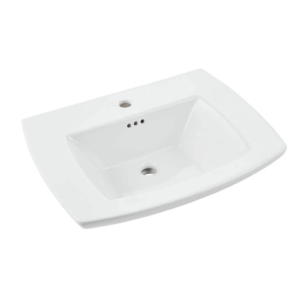 The Edgemere Console Table Top from American Standard has a transitional design that will complement any bathroom. The Edgemere Console Table Top pairs perfectly with the Edgemere Pedestal Bathroom sinks and the Edgemere Pedestal leg to give your bathroom a classic look. The Edgemere Console Table Top coordinates with Edgemere toilets.
