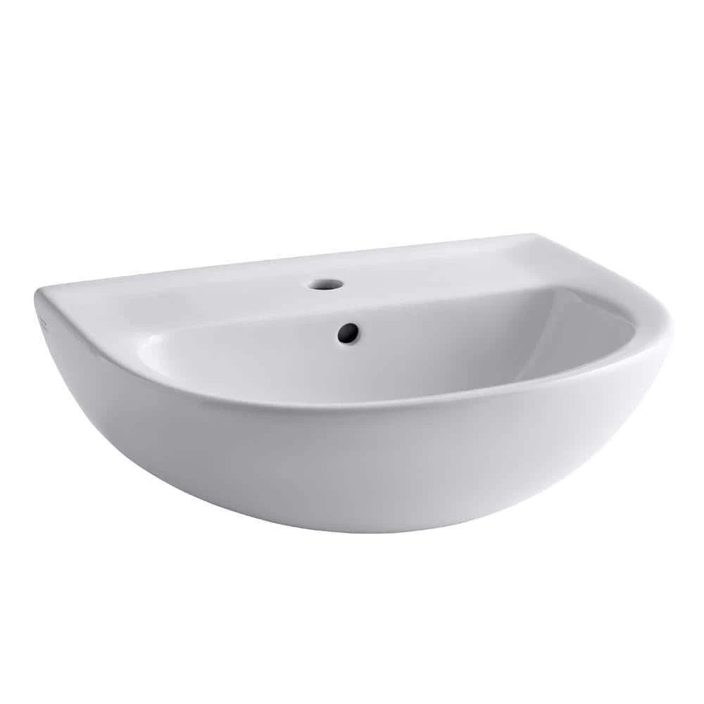Adapt to greater heights of style. This pedestal sink basin from our growing Evolution Collection goes well with casual bathroom decor. Features a faucet ledge with a large shelf area. The sink and separately purchased pedestal are both made from high-gloss, stain-resistant vitreous china.