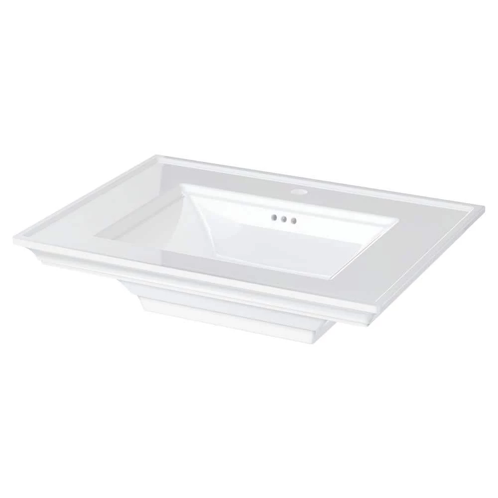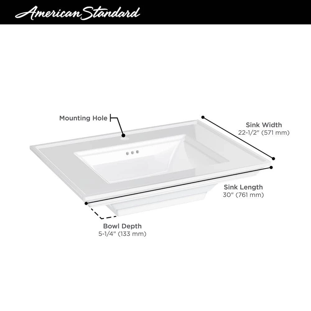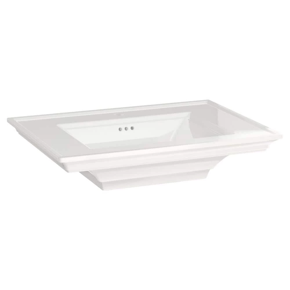 The Town Square S Bathroom Sink Top by American Standard introduces a sense of classic architecture into any bathroom decor, whether it is transitional or traditional. Architectural details such as crown molding and stately square shapes provide an air of elegance, an accent this signature design for a perfectly coordinated collection that makes it easy to create an expertly matched bathroom space. The sink top provides a generous surface area of useful working space in the bathroom.
