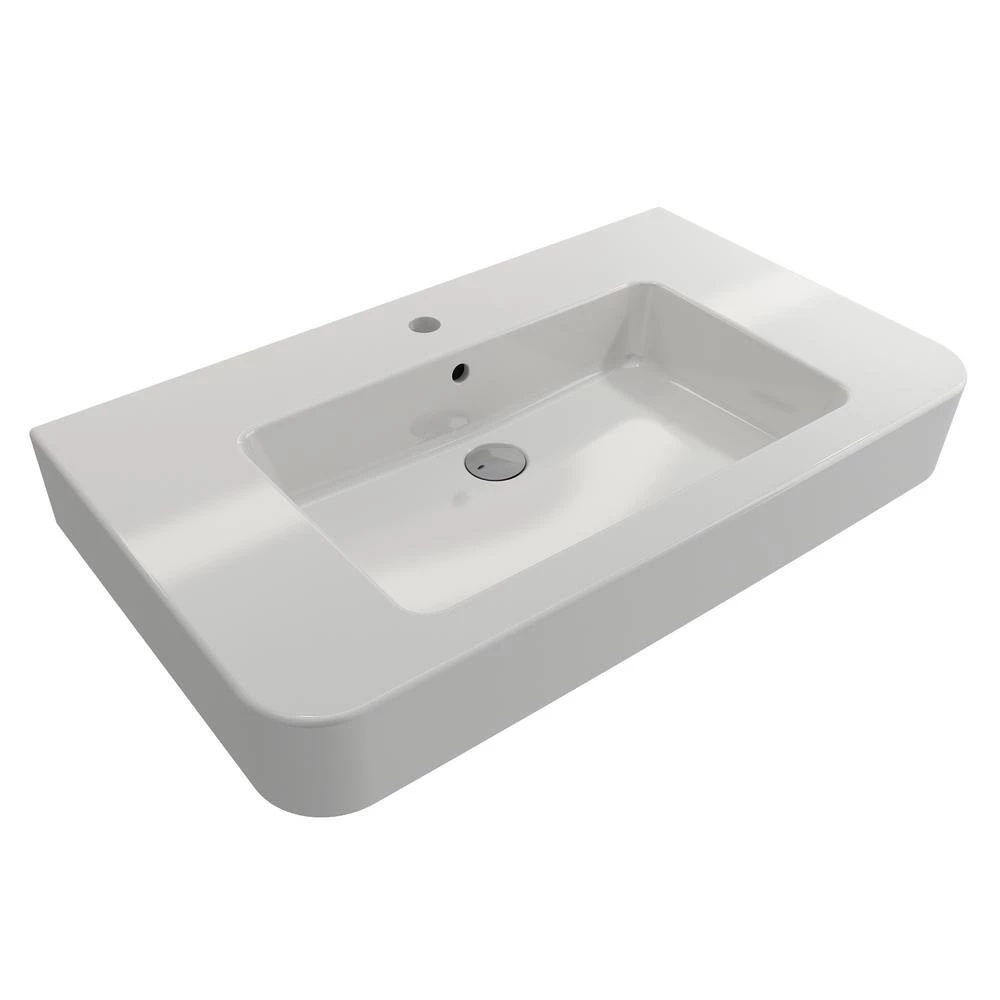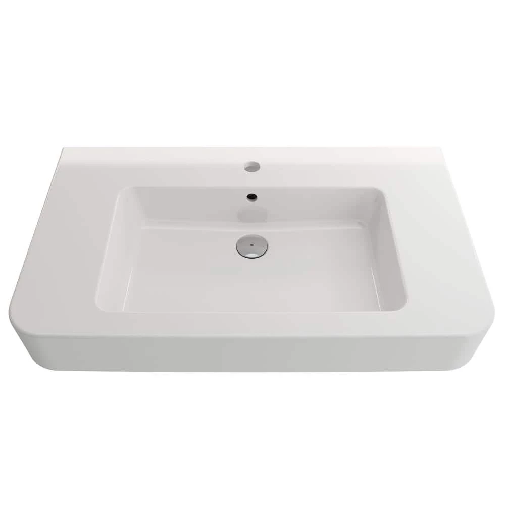 Parma 33.50 in. sink with single-hole faucet drilling with overflow. Made from 100% organic, super durable and non-porous fireclay; available in multiple colors and finishes. May be wall-hung, counter-set as a vessel, or used with the 3930 0001X Console Leg Set (sold separately).