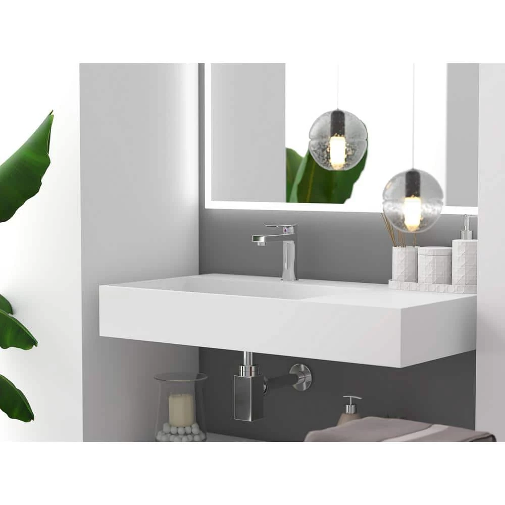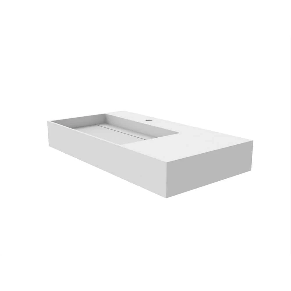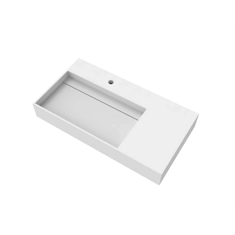 Castellousa Juniper 35.43 in. Wall Mount Solid Surface Left Side Basin Rectangle Non Vessel Bathroom Sink in Matte White