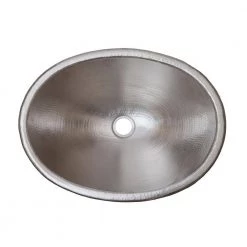 Premier Copper Products Self Rimming Oval Hammered Copper 17 in. Bathroom Sink in Nickel
