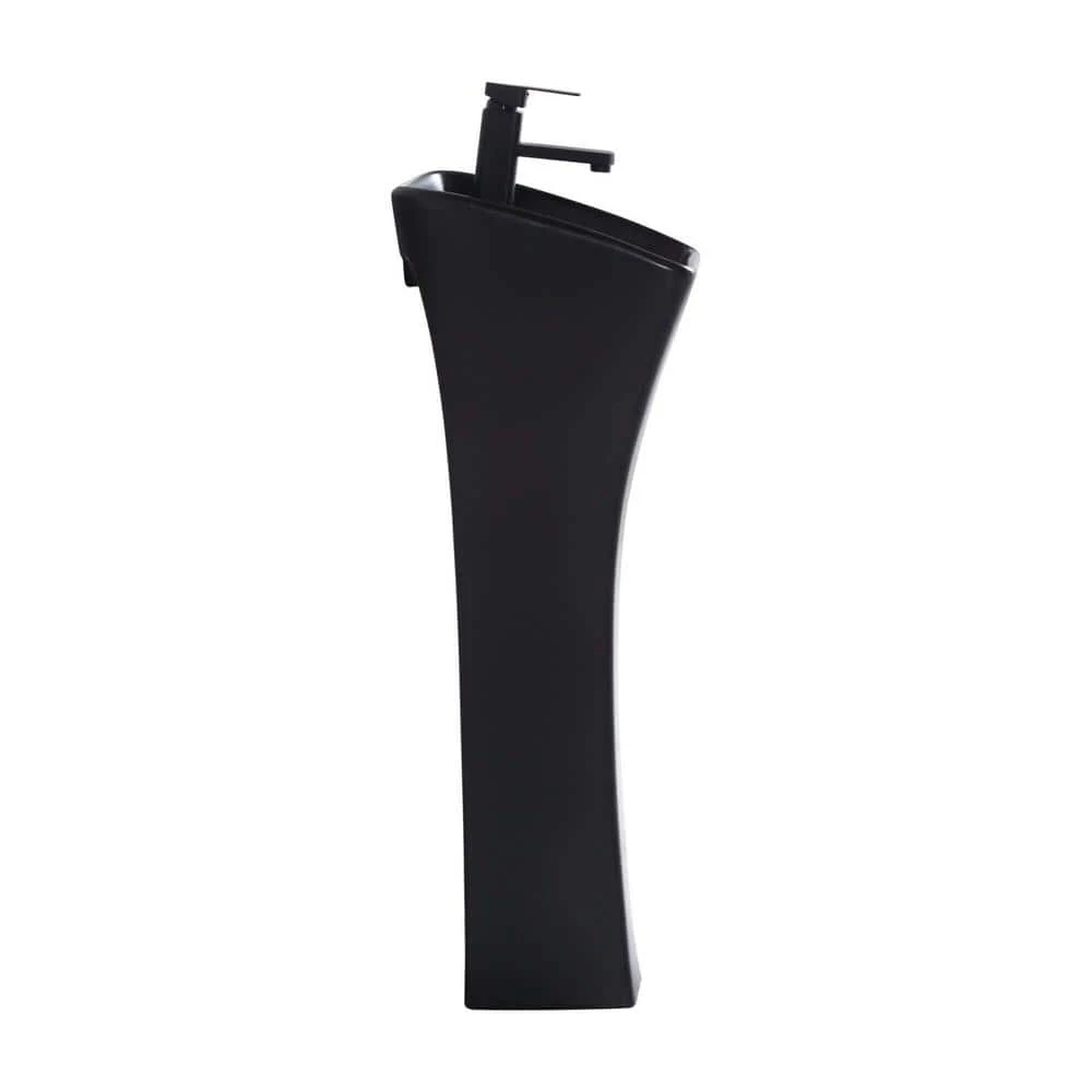 FINE FIXTURES Windfield 11 in. W x 12.62 in. L Modern Black Porcelain Freestanding Pedestal Sink and Basin Combo with Overflow