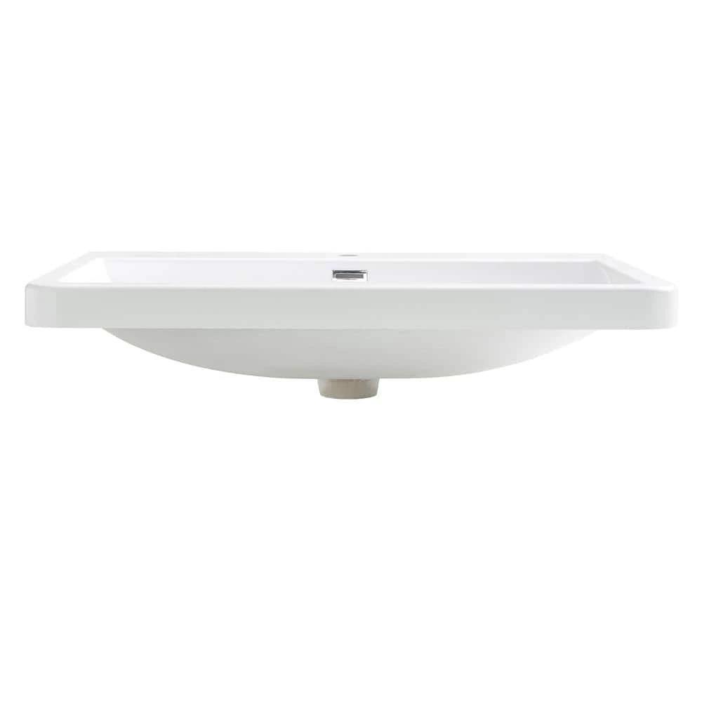 Elegant fixtures like this Fresca Milano integrated sink and countertop truly demonstrate the shape of things to come in bathroom dcor. This gorgeous sink has an oversized basin and provides a clean, bold element that will elevate your bathrooms wow factor. It has a lovely rim around the basin and features a single hole faucet mount. This White integrated sink and countertop measures 32 in. width and is also available in 26 in.