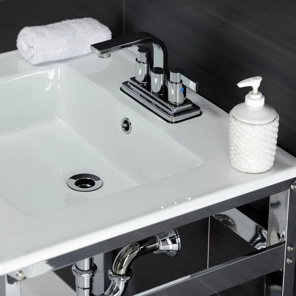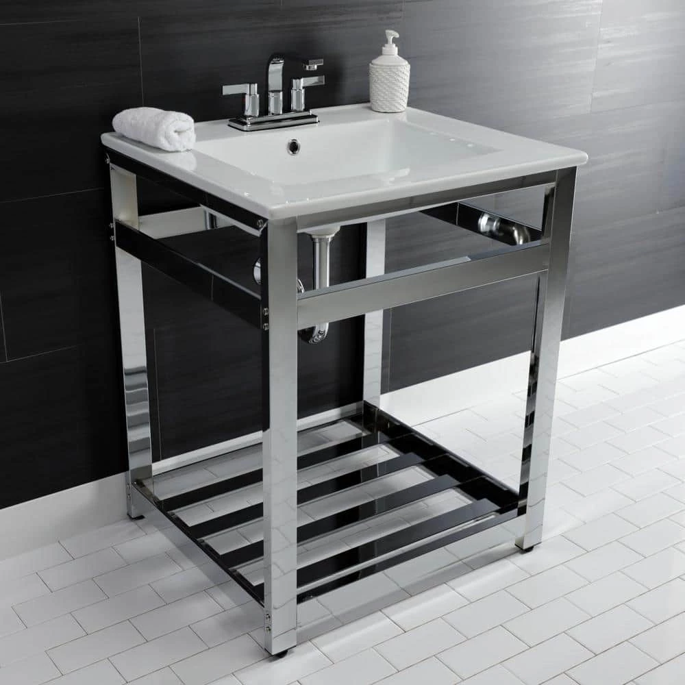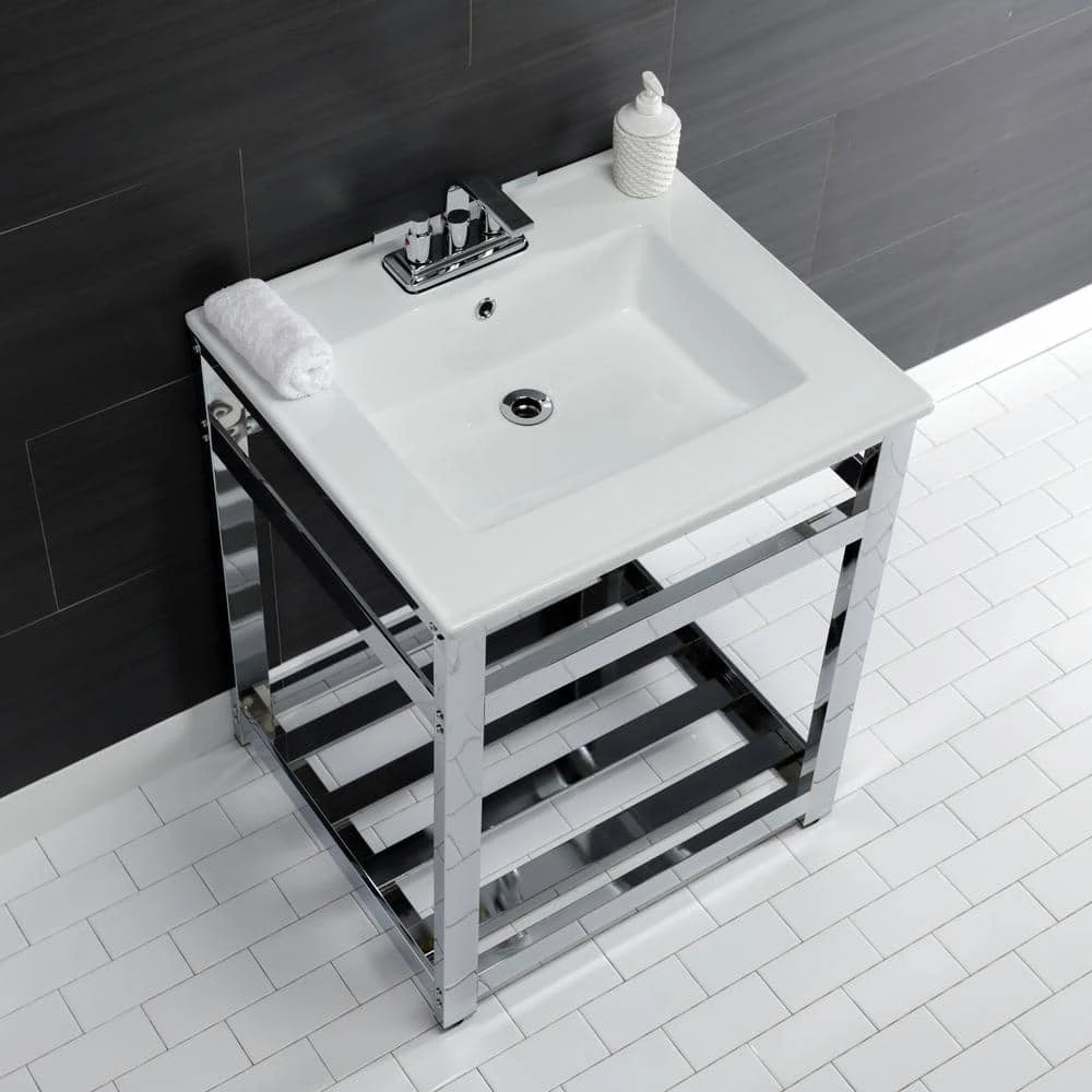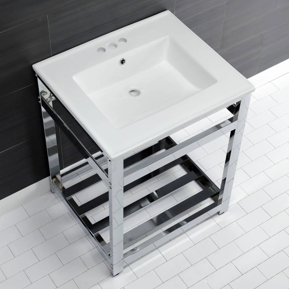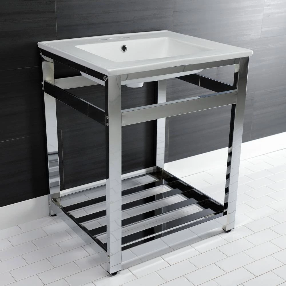 Kingston Brass 25 in. Ceramic Console Sink (4 in. in 3-Hole) with Stainless Steel Base in Chrome