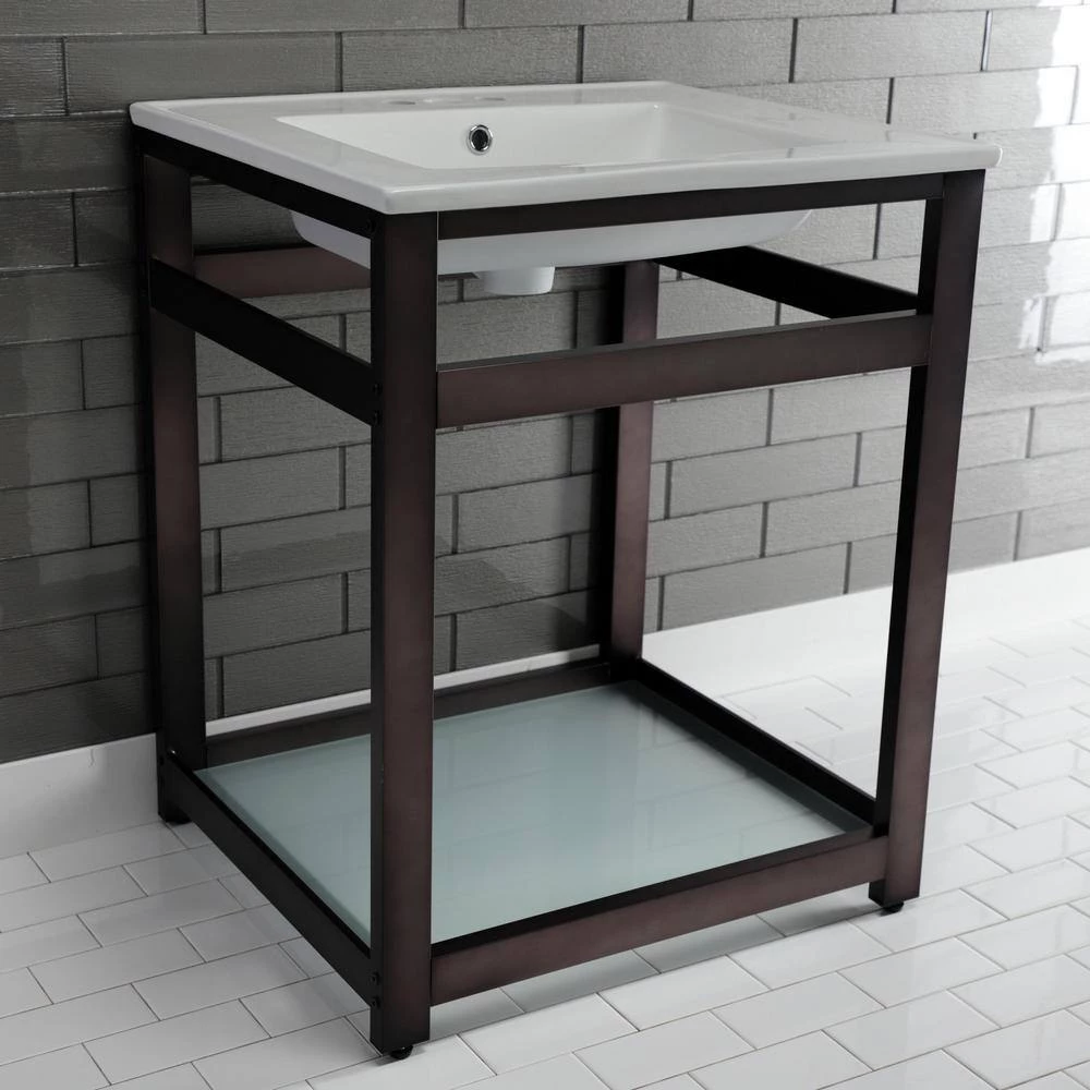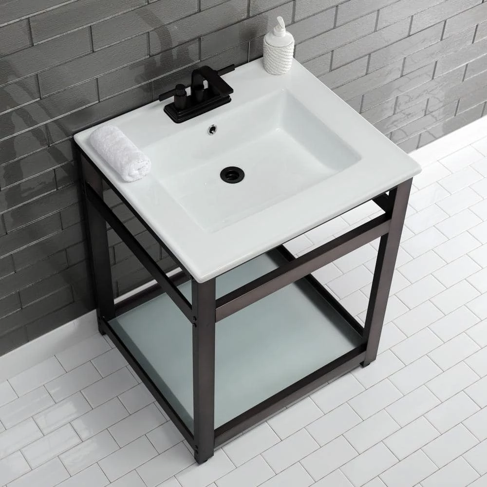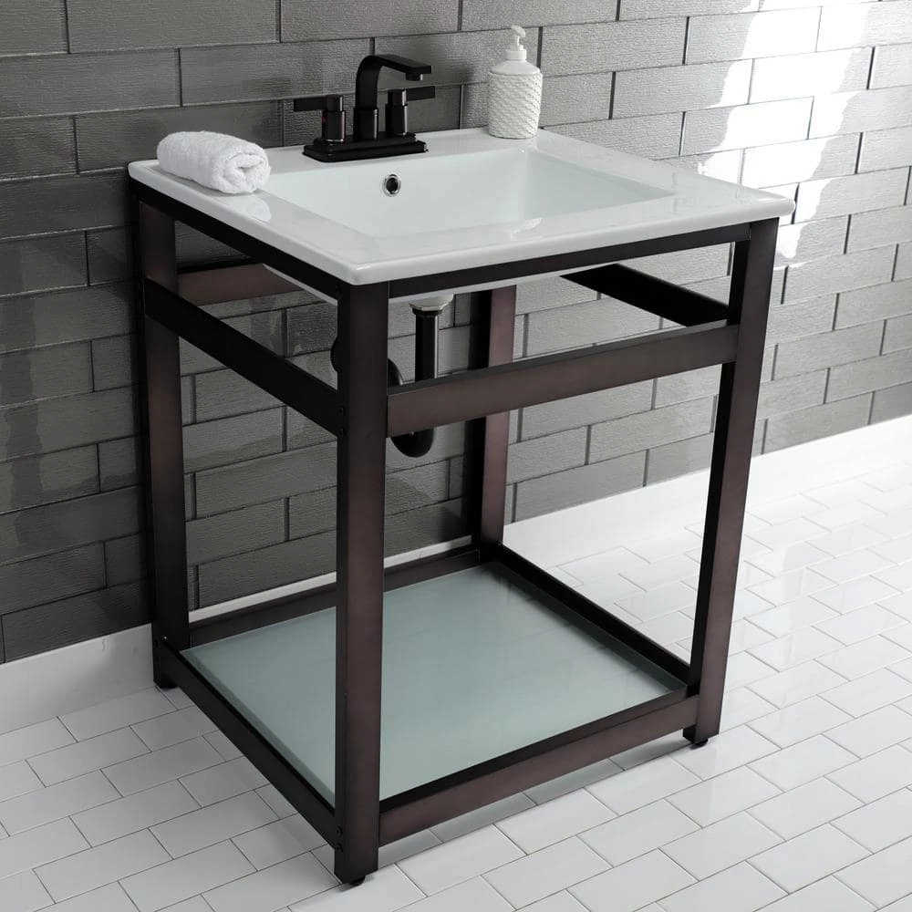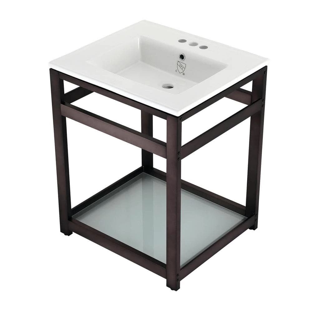 Kingston Brass 25 in. Ceramic Console Sink (4 in. in 3-Hole) with Stainless Steel Base in Oil Rubbed Bronze