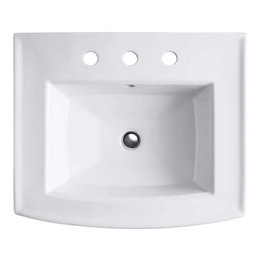 The KOHLER Archer 7.87 in. Pedestal Sink Basin in White is crafted from vitreous china to offer long-term durability that is easy to maintain for a quality basin. A rear overflow is included in the design to help prevent spillage. The basin is intended for use with a pedestal base (sold separately) or a unique look in the bath or powder room.