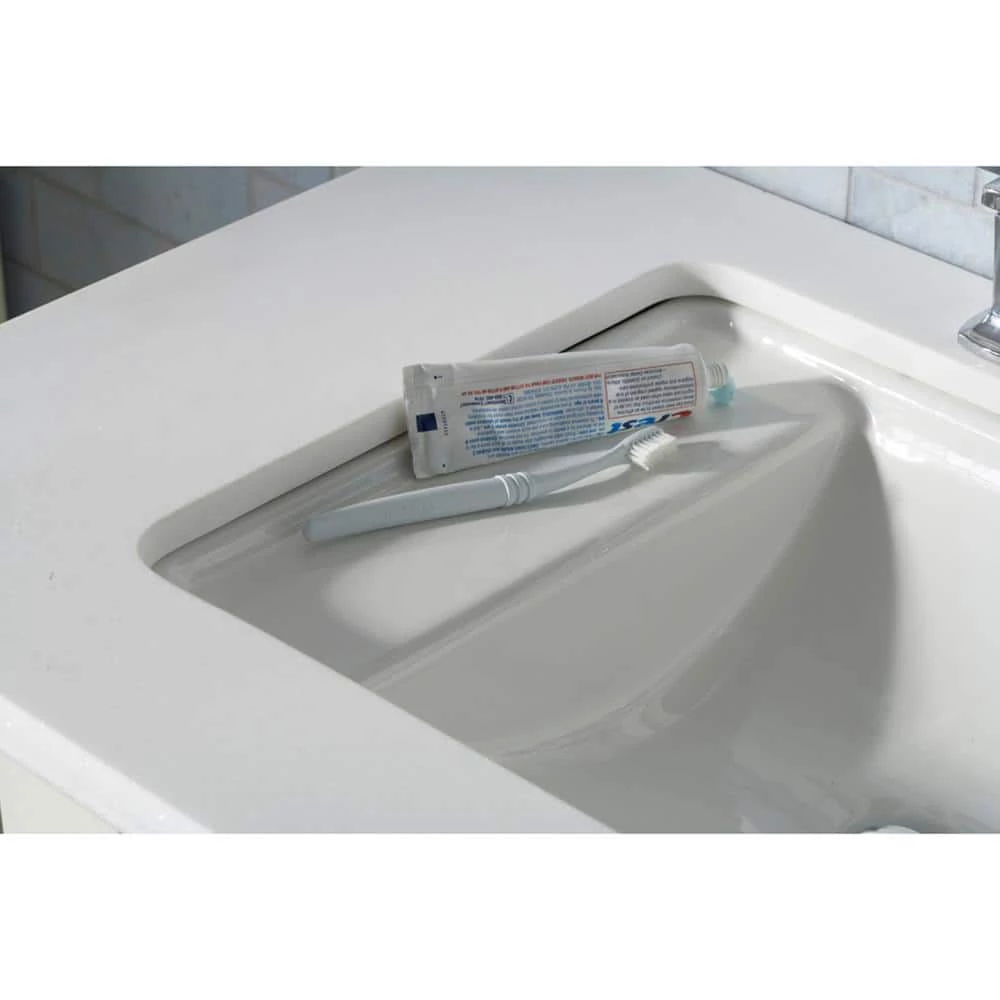 The unique geometry of Ledges creates a look that is modern and functional. Wet surface ledges flank both sides of this gently sloped basin, providing extra work space and storage for everyday items like toothbrushes and contact lenses.