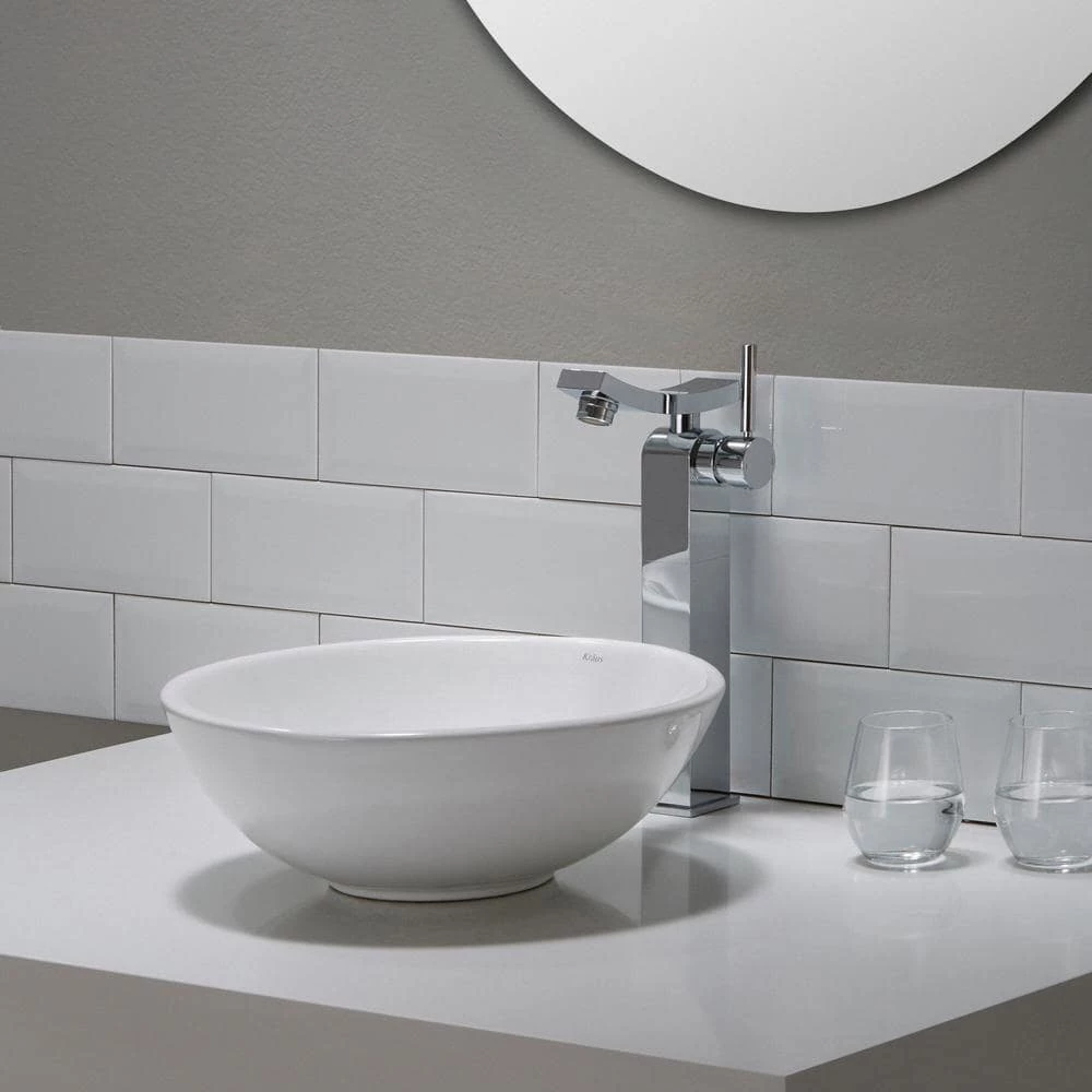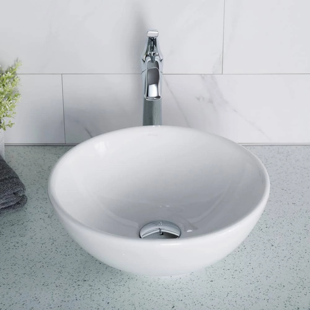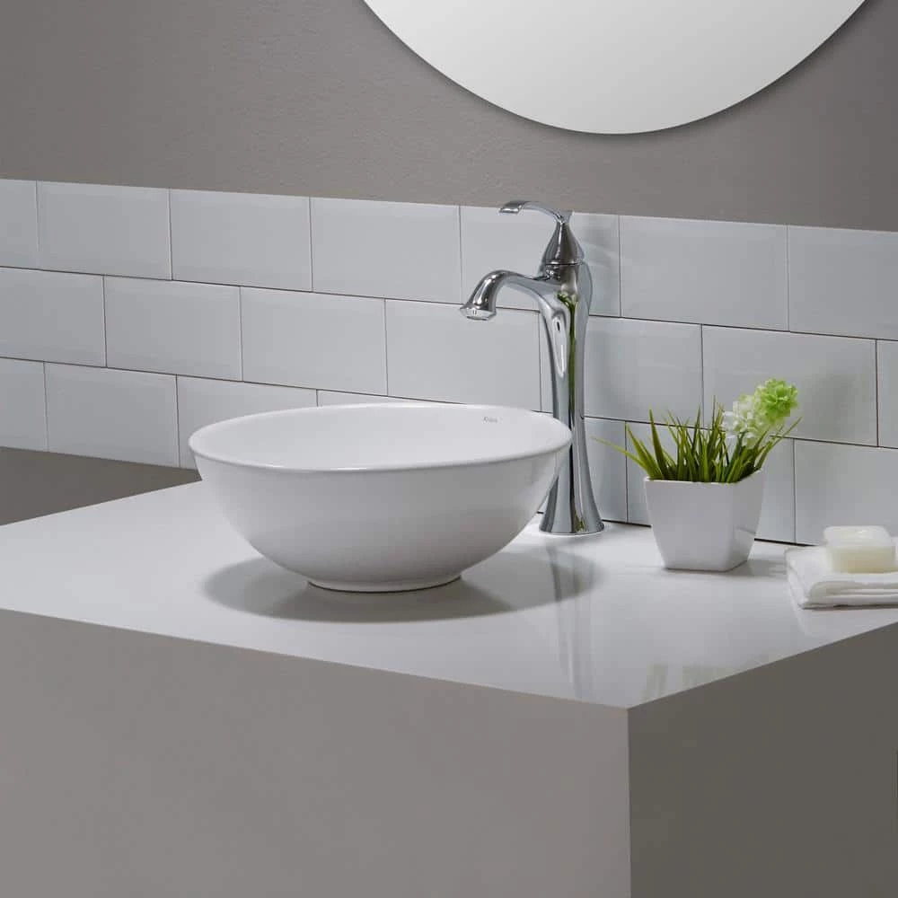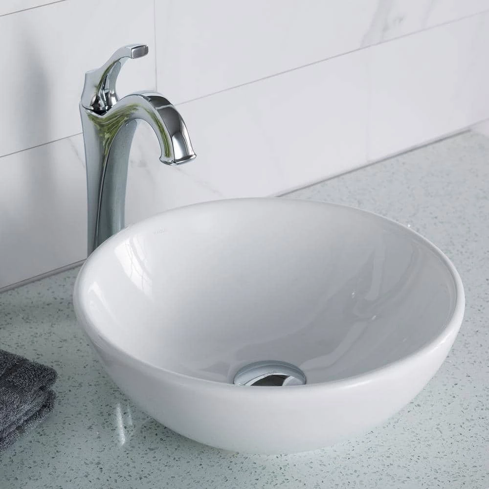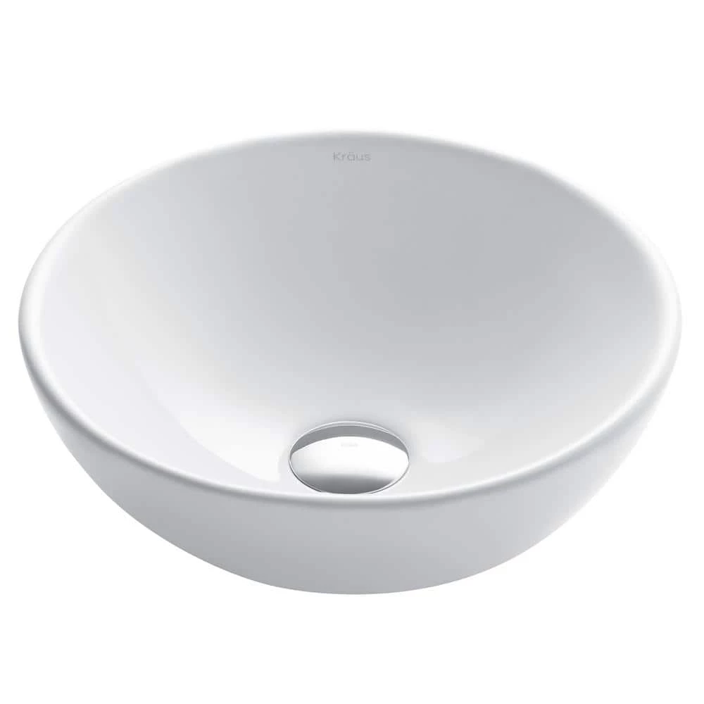 KRAUS Elavo Small Round Ceramic Vessel Bathroom Sink in White