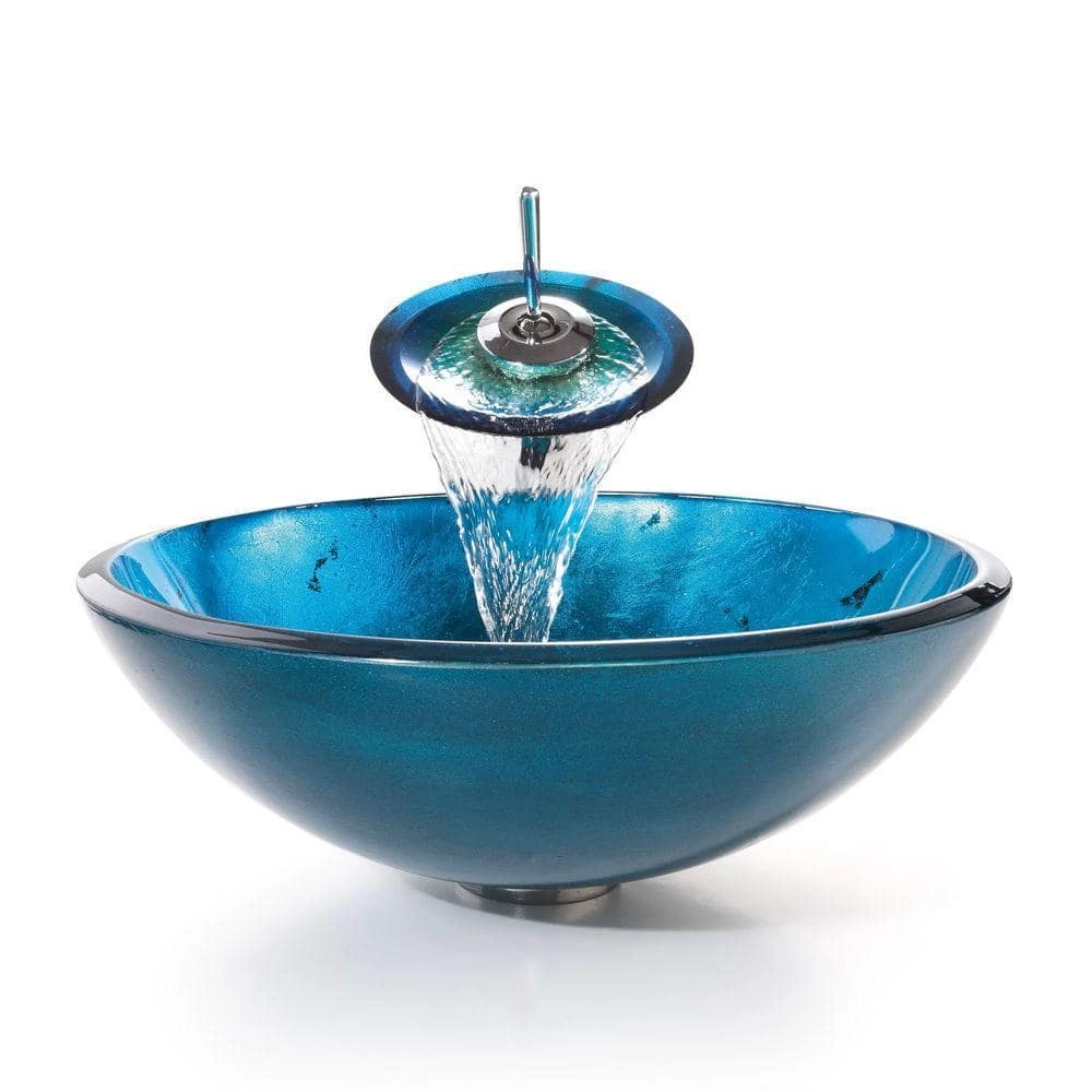 Add a touch of color to your bathroom with a KRAUS glass vessel sink and faucet combination. Handcrafted from tempered glass, the modern bathroom sink coordinates with a variety of decor styles. A freestanding basin design creates a dramatic look with contemporary appeal. Vessel installation offers an easy top mount option for all your stylish bathroom ideas. The textured surface of the sink is dynamic and requires minimal maintenance to keep clean. Pair it with a waterfall faucet with matching glass disk for additional value, and create an instant style upgrade for less.