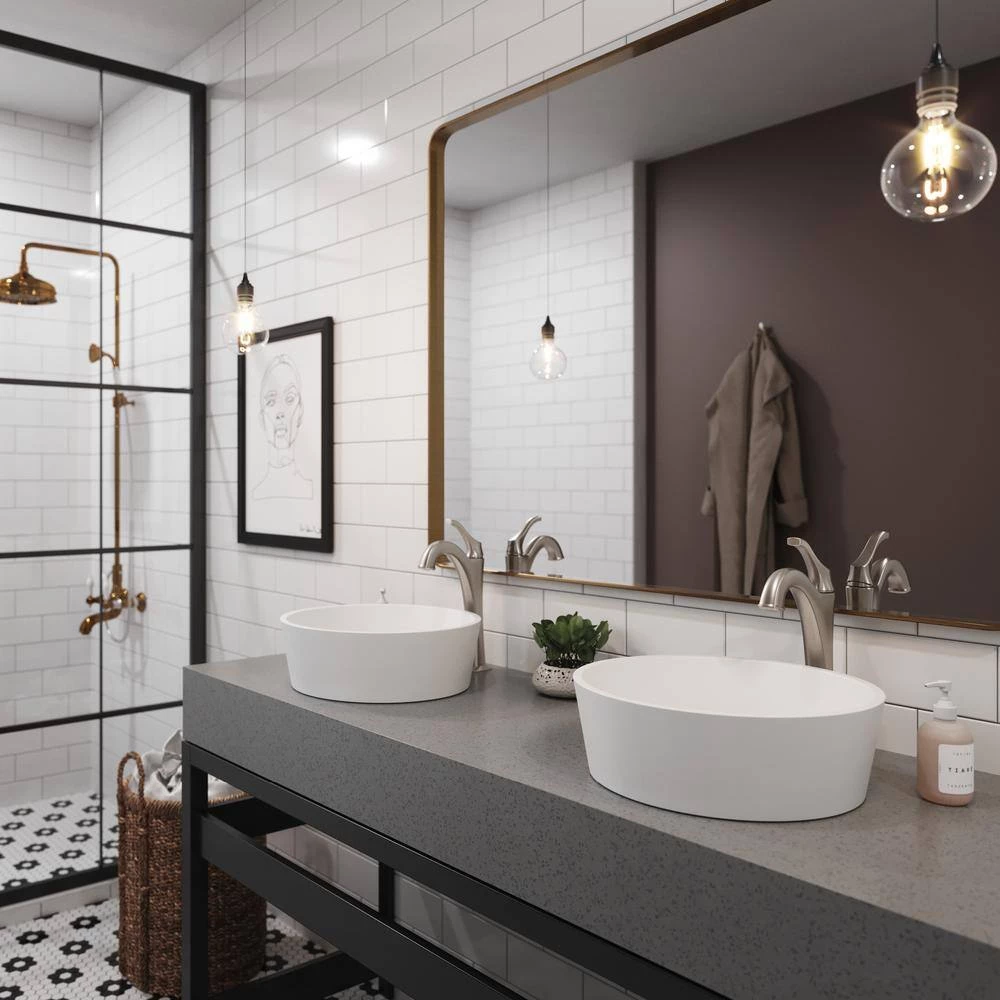 - Easy above-counter installation works with any countertop and makes an eye-catching modern style statement while maximizing available space on the bathroom vanity