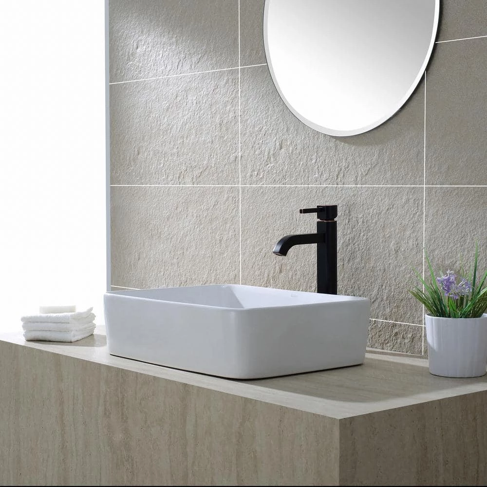 Update your bathroom with the clean look of a KRAUS Elavo Series ceramic sink. The versatile design features a premium baked-on glaze for a high-gloss finish that’s easy to clean. Complements any decor from classic to contemporary.