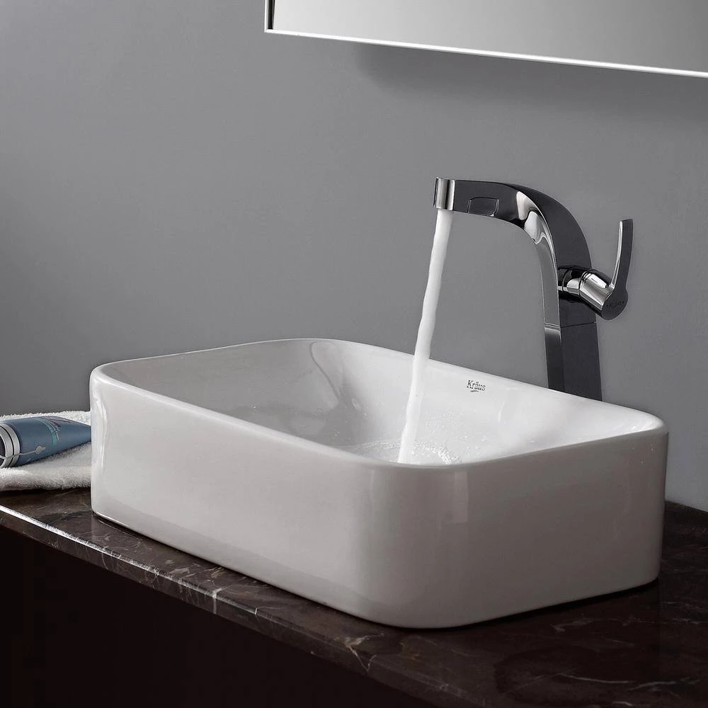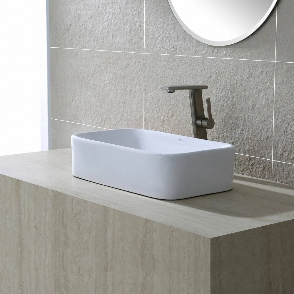 Update your bathroom with the clean look of a KRAUS Elavo Series ceramic sink. The versatile design features a premium baked-on glaze for a high-gloss finish that’s easy to clean. Complements any decor from classic to contemporary.