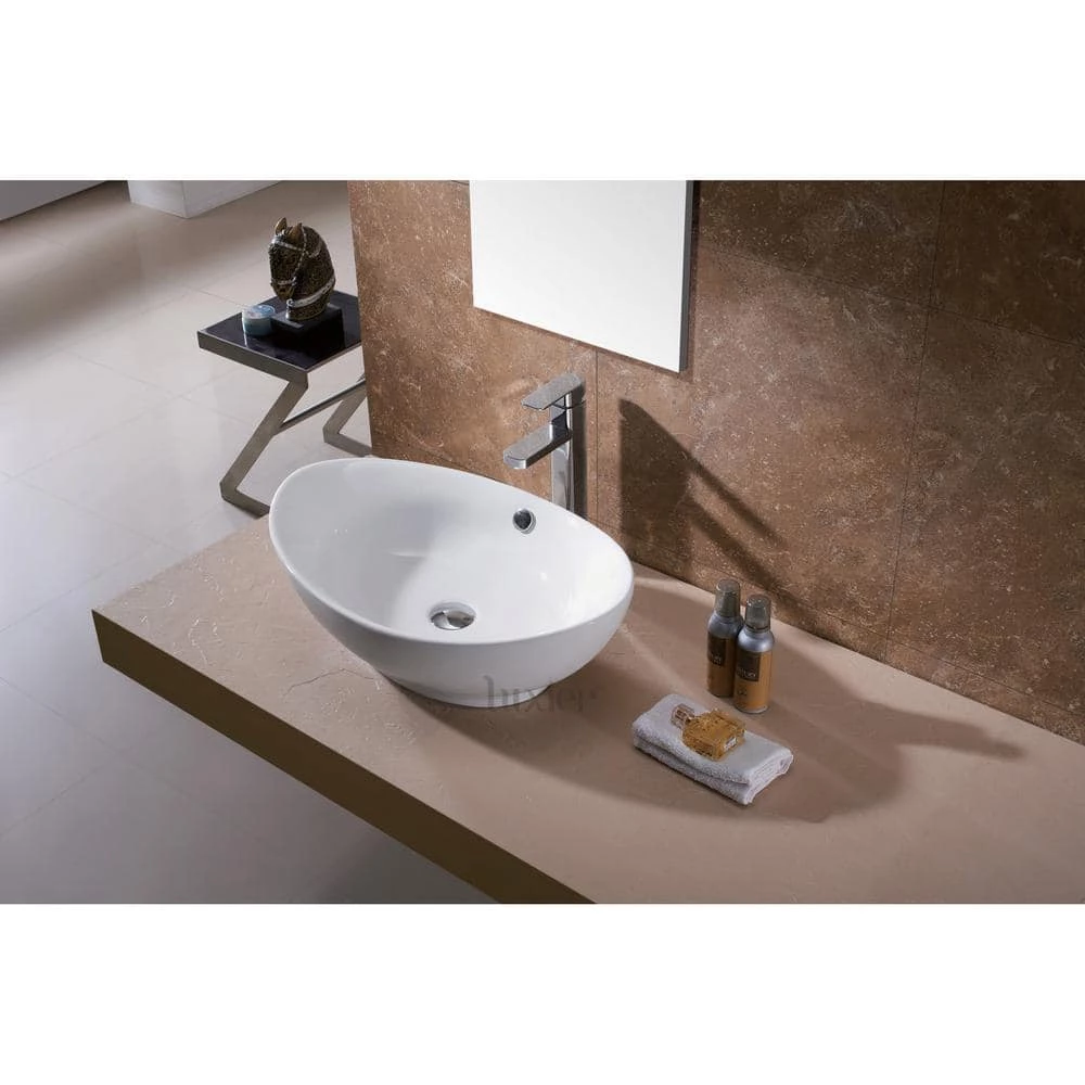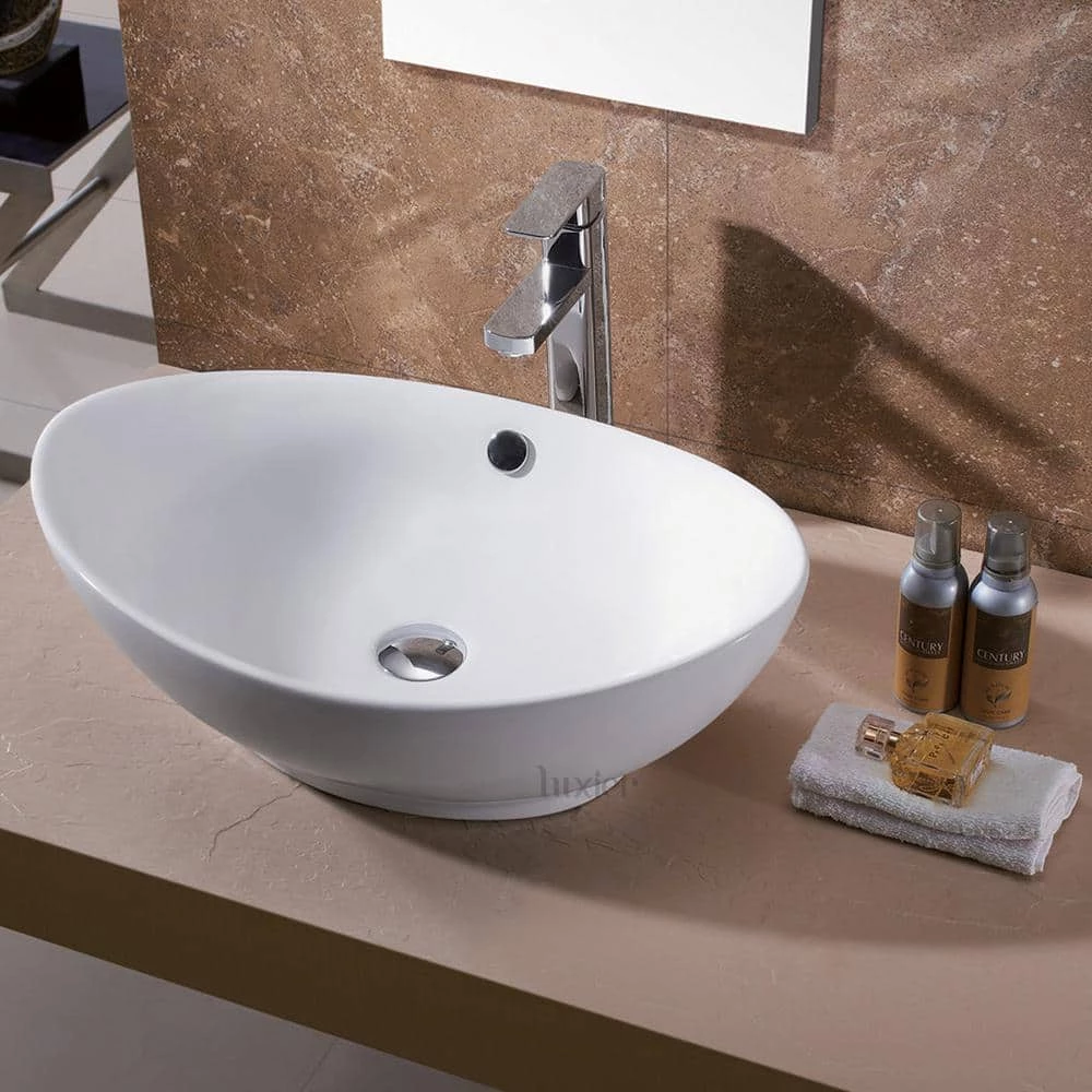 LUXIER Oval Bathroom Ceramic Vessel Sink Art Basin in White