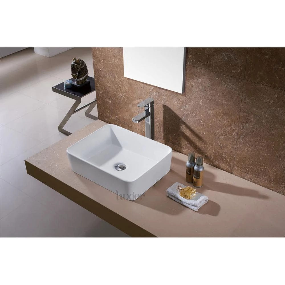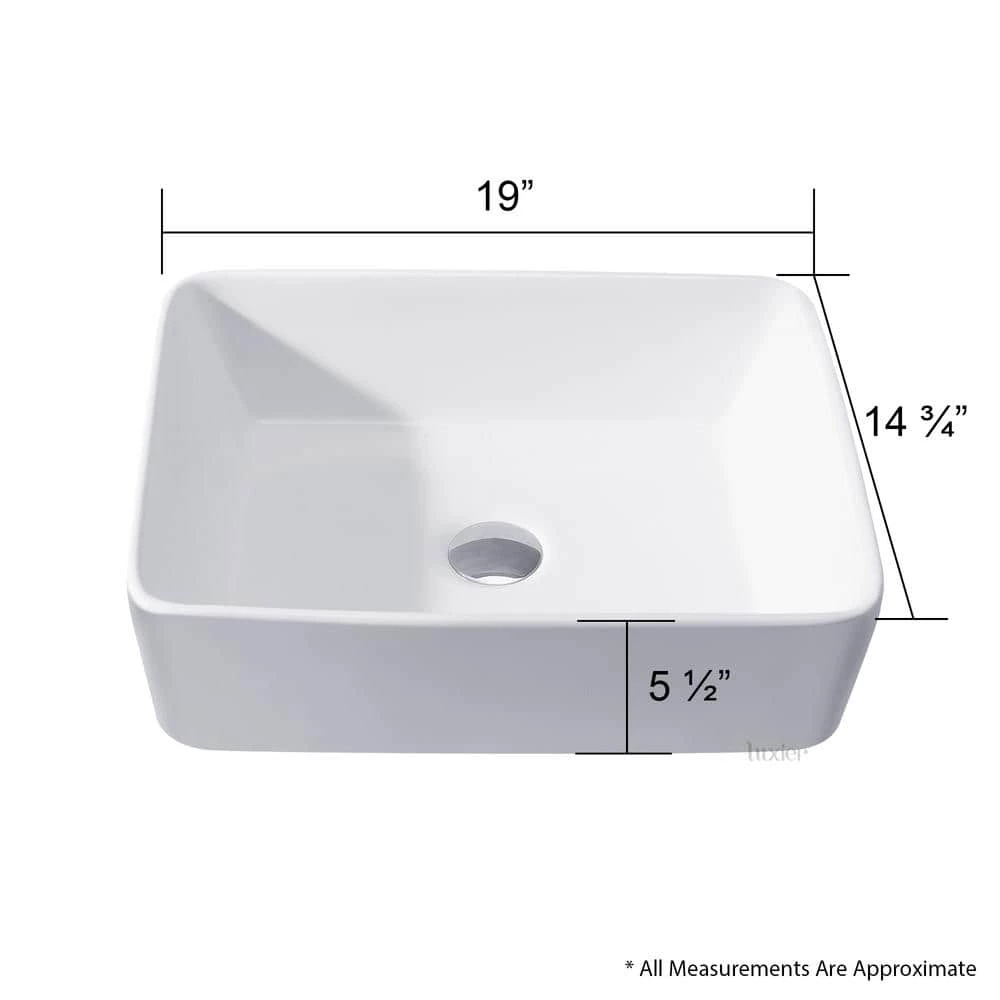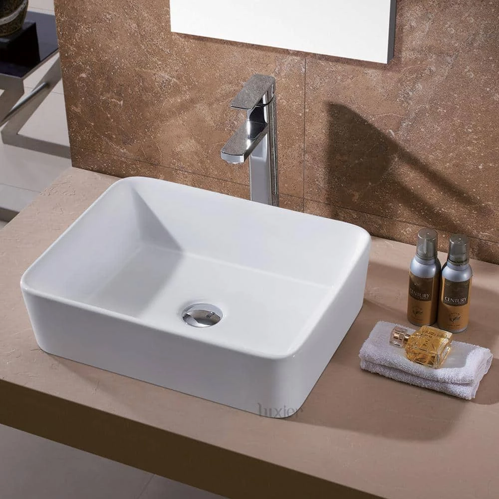LUXIER Rectangular Bathroom Ceramic Vessel Sink Art Basin in White