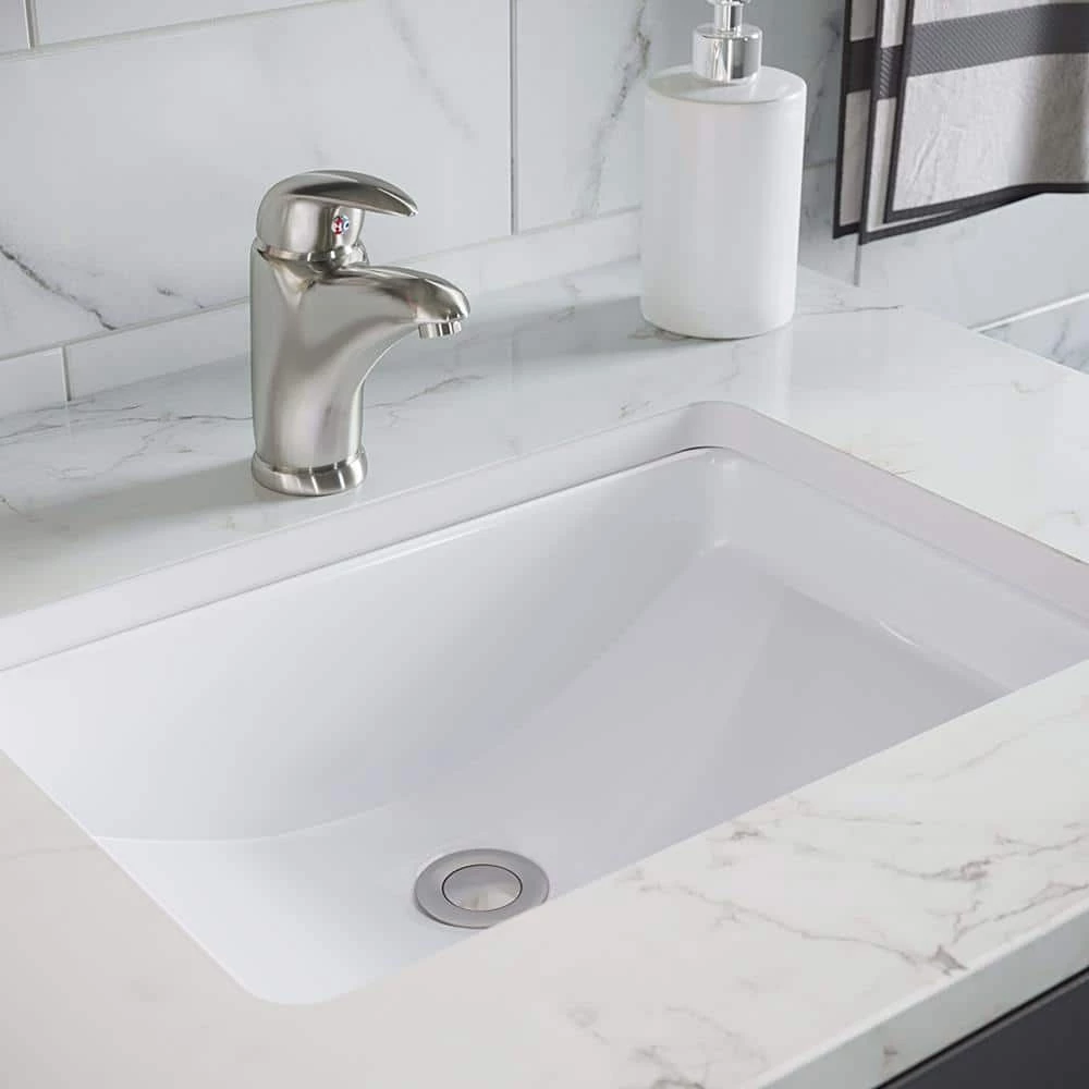 The U1913W-SLW porcelain undermount sink is made from true vitreous China which is triple glazed and triple fired to ensure your sink is durable and strong. This sink can be mounted under a laminate countertop with the included SinkLink installation piece, creating a sleek look. Offered in white, black or gray, the SinkLink is perfectly shaped to conjoin the undermount sink and laminate countertop into a flushed and flawless finish. Constructed from a thick durable plastic, SinkLink acts as a secure barrier that keeps the foundation of the laminate countertop dry. The overall dimensions for the U1913W-SLW are 20-3/4 in. x 14-3/4 in. x 7-3/4 in. and require a 24 in. minimum cabinet size. As always, our porcelain sinks are covered under a limited lifetime warranty for as long as you own the sink.