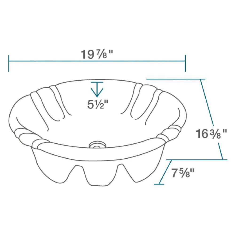 The elegant, oval design of this sparkling porcelain sink is but the first of its many fine traits. A series of symmetrical grooves rise from the bottom of the basin’s interior, and flow over its brim, simulating the petals of a graceful flower. The additional vitreous china coating on this model creates an even more impervious and sanitary surface than standard porcelain. With an overall measurement of 19-7/8 in. x 16-3/8 in. x 7-5/8 in., it will require a minimum-width cabinet of 21 in. Additionally, a spring-loaded, pop-up drain (pud) is included, which opens and closes with a simple press to its attractive antique bronze cap.