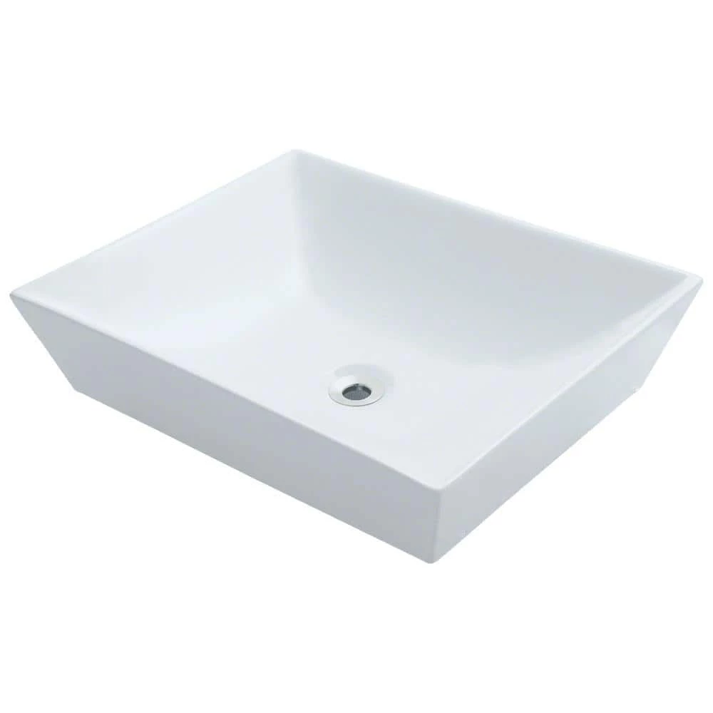 The V370-White porcelain vessel sink offers a unique, modern look for any bathroom. It is made from true vitreous China, which is triple glazed and triple fired to ensure your sink is durable and strong. Because this sink is a vessel, no mounting hardware is needed. The overall dimensions for the V370-White are 19 5/8 in. x 16 in. x 4 1/2 in. and a 21 in. minimum cabinet size is required. Vessel sinks require a special spring-loaded pop-up drain, which we offer in a variety of finishes to fit your decor. As always, our porcelain sinks are covered under a limited lifetime warranty for as long as you own the sink.