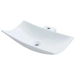 - Original styling – a bowed, rectangular, porcelain bowl with a platform and pre-drilled faucet hole