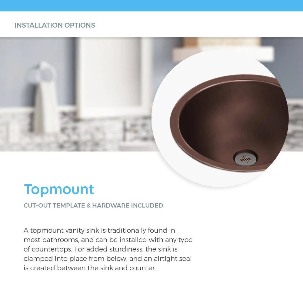 MR Direct Top-Mount Bathroom Sink in Copper with Grid Drain in Antique Bronze