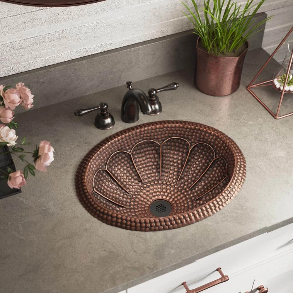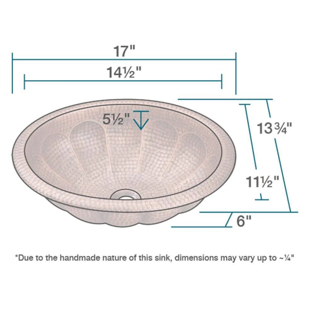 - Distinctive styling – topmounted, an oval basin with a scallop pattern and hand-hammered beauty