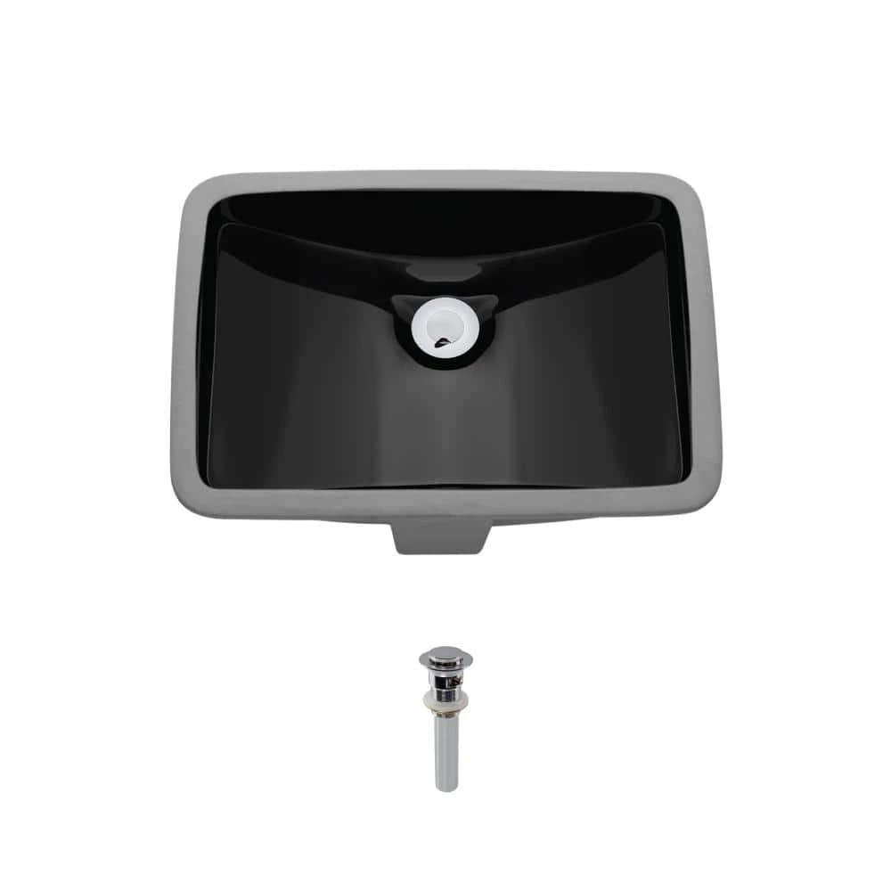 A glamorous example of porcelain’s functionality and durability shines in this rectangular, deep-bowl form. Designed to be undermounted, it has an offset drain which allows for more upfront room below the cabinet, and its overflow hole prevents excessive filling. The additional vitreous china coating on this model creates an even more impervious and sanitary surface than standard porcelain. With an overall measurement of 20-3/4 in. x 14-3/4 in. x 7-3/4 in. it will require a minimum-width cabinet of 24 in. Additionally, a spring-loaded, pop-up drain is included, which opens and closes with a simple press to its attractive chrome cap.