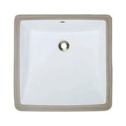 The U2230-White rectangular porcelain under mount sink is made from true vitreous China which is triple glazed and triple fired to ensure your sink is durable and strong. Under mounting a bathroom sink creates a sleek look and allows for more space on your countertop. The overall dimensions for the U2230-white are 17 in. x 17-1/2 in. x 7-1/2 in. and requires an 18 in. minimum cabinet width; 21 in. minimum cabinet depth. Pop-up drains in a variety of finishes are available with this sink model. As always, our porcelain sinks are covered under a limited lifetime warranty for as long as you own the sink.