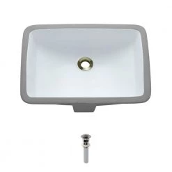 A glamorous example of porcelain’s functionality and durability shines in this rectangular, deep-bowl form. Designed to be under mounted, it has an offset drain which allows for more upfront room below the cabinet, and its overflow hole prevents excessive filling. The additional vitreous china coating on this model creates an even more impervious and sanitary surface than standard porcelain. With an overall measurement of 20-3/4 in. x 14-3/4 in. x 7-3/4 in., it will require a minimum-width cabinet of 24 in. Additionally, a spring-loaded, pop-up drain (pud) is included, which opens and closes with a simple press to its attractive brushed nickel cap.