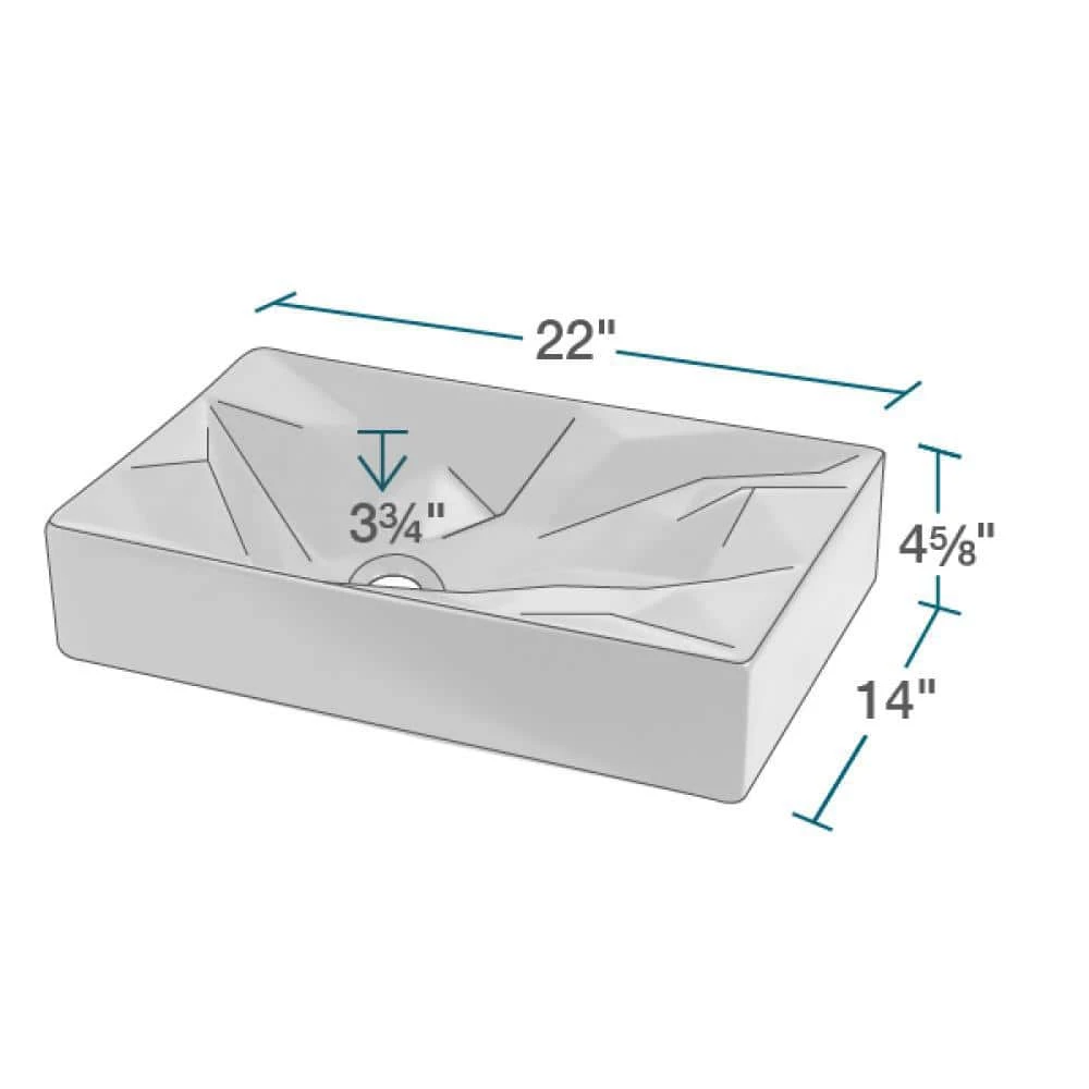 The V430- Matte Black porcelain vessel sink offers a statement piece for any traditional or contemporary bathroom design. The classy color and geometric pattern gives a sophisticated touch to any space without overpowering the room. This porcelain sink is fired in a special kiln at a lower temperature than standard porcelain, properly baking the matte glaze for a smooth finish. Because this sink is a vessel, no mounting hardware is needed. The overall dimensions of the sink are 22 in. x 14 in. x 4-5/8 in. and a 24 in. minimum cabinet size is required. This listing does not include any accessories.