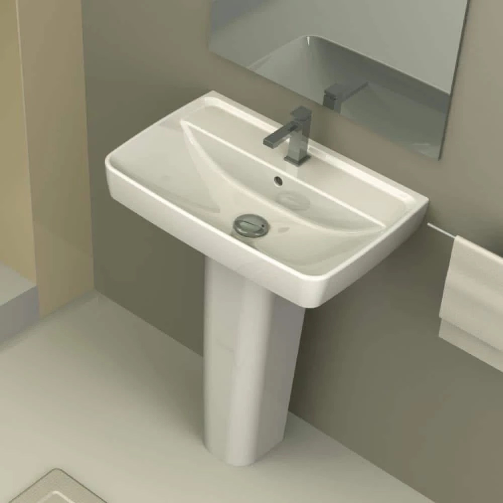Square white wall mounted bathroom sink made from high quality ceramic. Part of CeraStyle’s Duru collection, this sink can be either wall-mounted or drop-in and includes overflow. Perfect for the contemporary style bathroom.