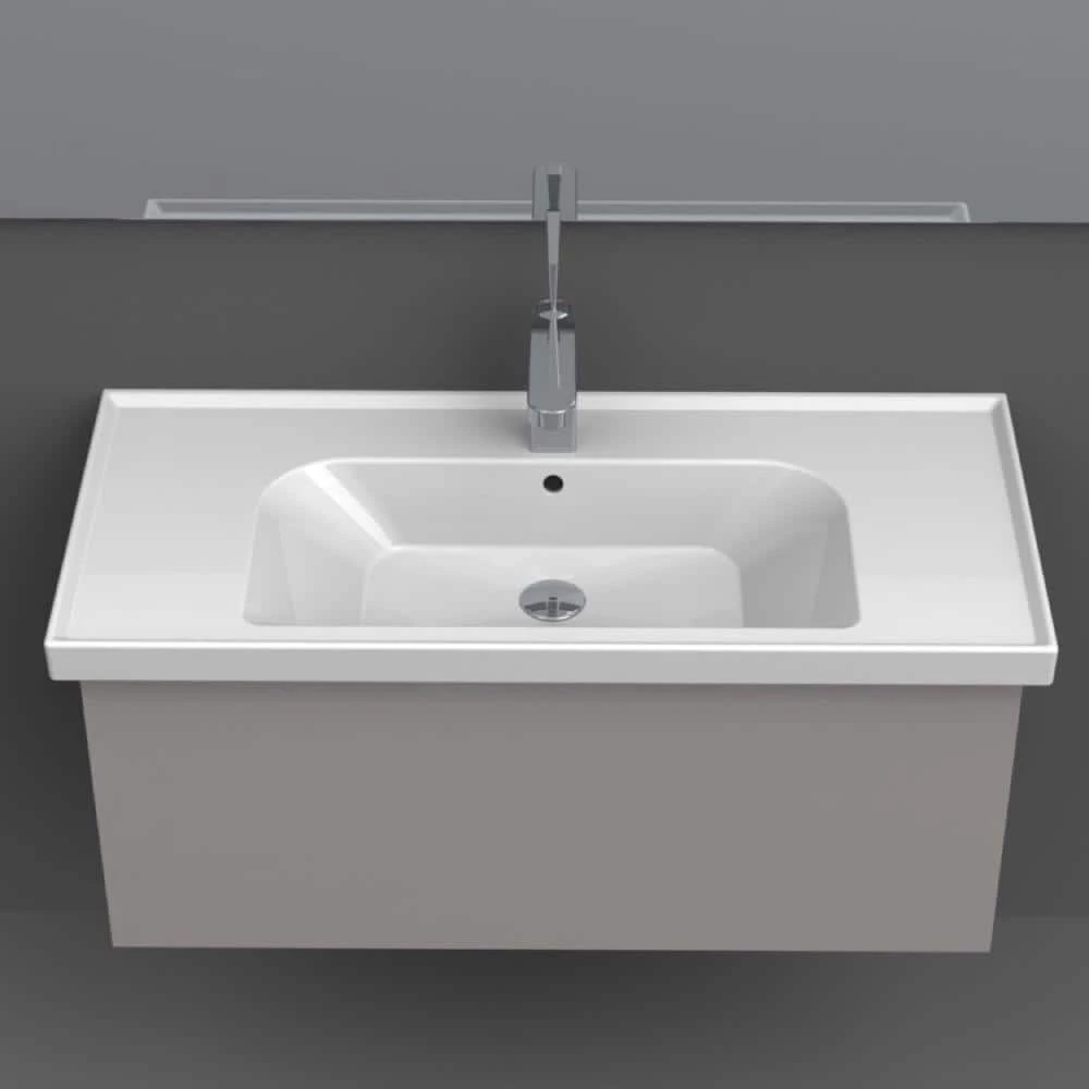 Rectangle white bathroom sink made from high quality ceramic. Contemporary style sink with wall mounted mounting. Sink has 1 pre-drilled faucet hole. Part of the CeraStyle frame collection. Made in turkey.