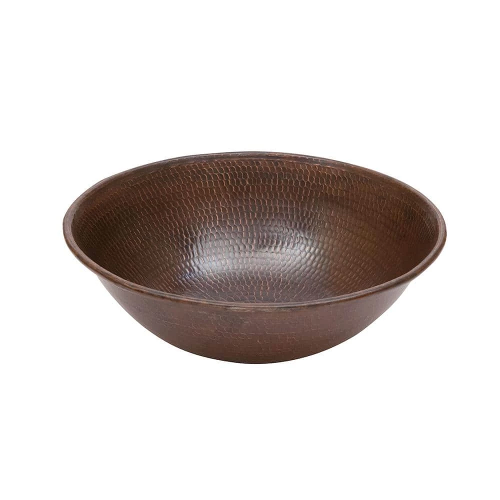 - 15″ Round Wired Rim Vessel Hammered Copper Sink