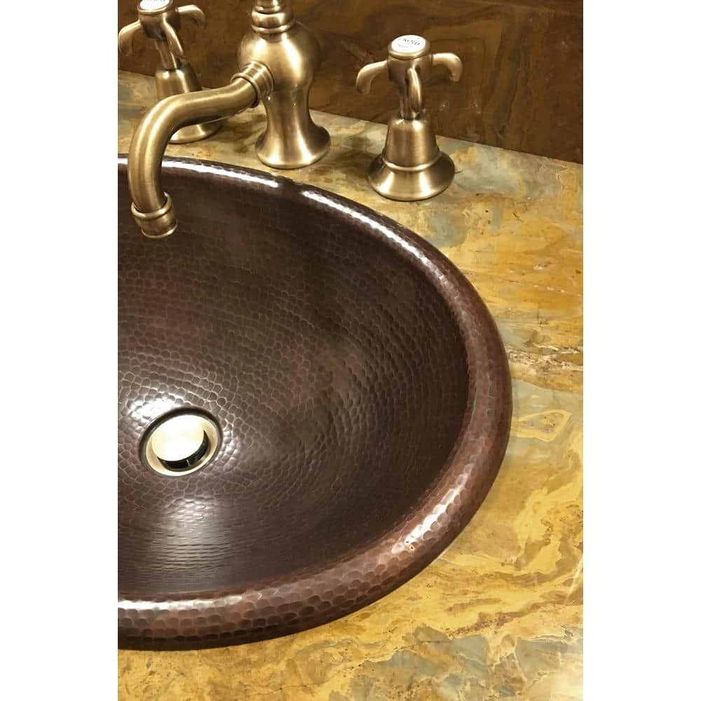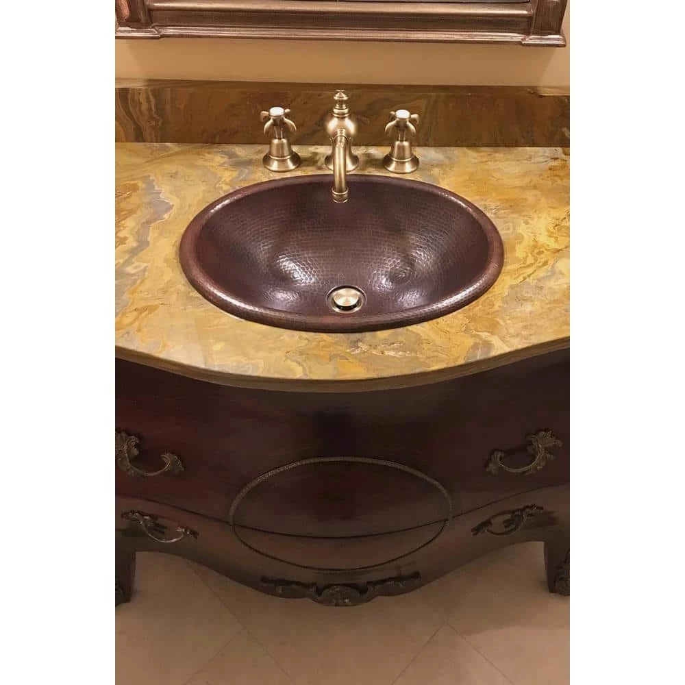 - 17″ Oval Self Rimming Hammered Copper Bathroom Sink