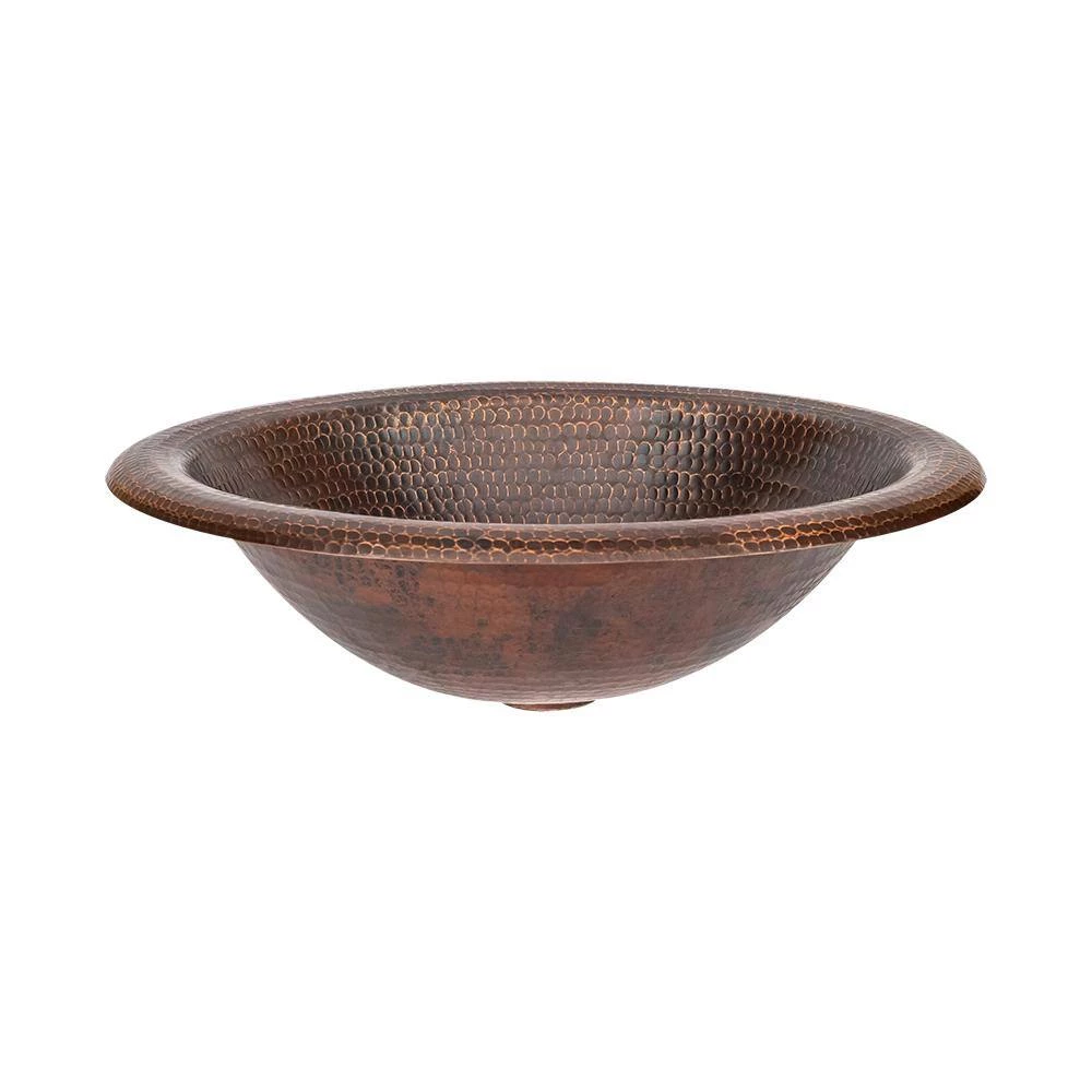 - 18″ Wide Rim Oval Self Rimming Hammered Copper Bathroom Sink