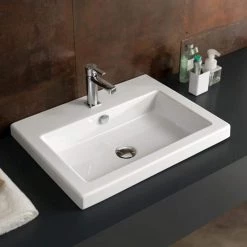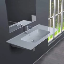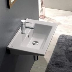 Nameeks Blue Rectangular Wall Mounted Bathroom Sink in White