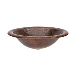 Premier Copper Products Drop-In Oval Hammered Copper 17 in. Bathroom Sink in Polished Copper