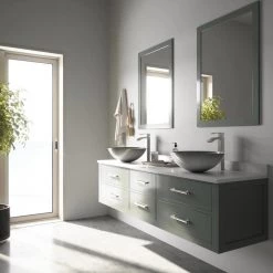 VIGO Glass Round Vessel Bathroom Sink in Silver with Duris Faucet and Pop-Up Drain in Brushed Nickel