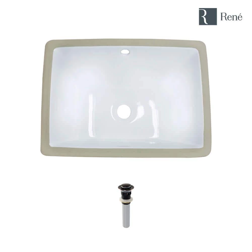 This attractive white porcelain basin is designed to be mounted under the counter in a flush, positive, or negative reveal. The R2-1007-W is constructed of solid porcelain but with a special additional enamel added at the end of its firing, turning it into a hardened true Vitreous china. On its own, porcelain is both beautiful and durable, but the additional Vitreous china coating creates an even more impervious and sanitary surface. This rectangular basin measures 18-1/4 in. x 13 in. x 7-7/8 in., with a centerset drain and overflow. Included is a spring-loaded pop-up drain which can be opened or closed with a simple press to its antique bronze dome.