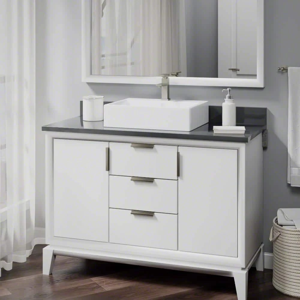 - Supportive extras – vessel faucet and vessel pop-up drain