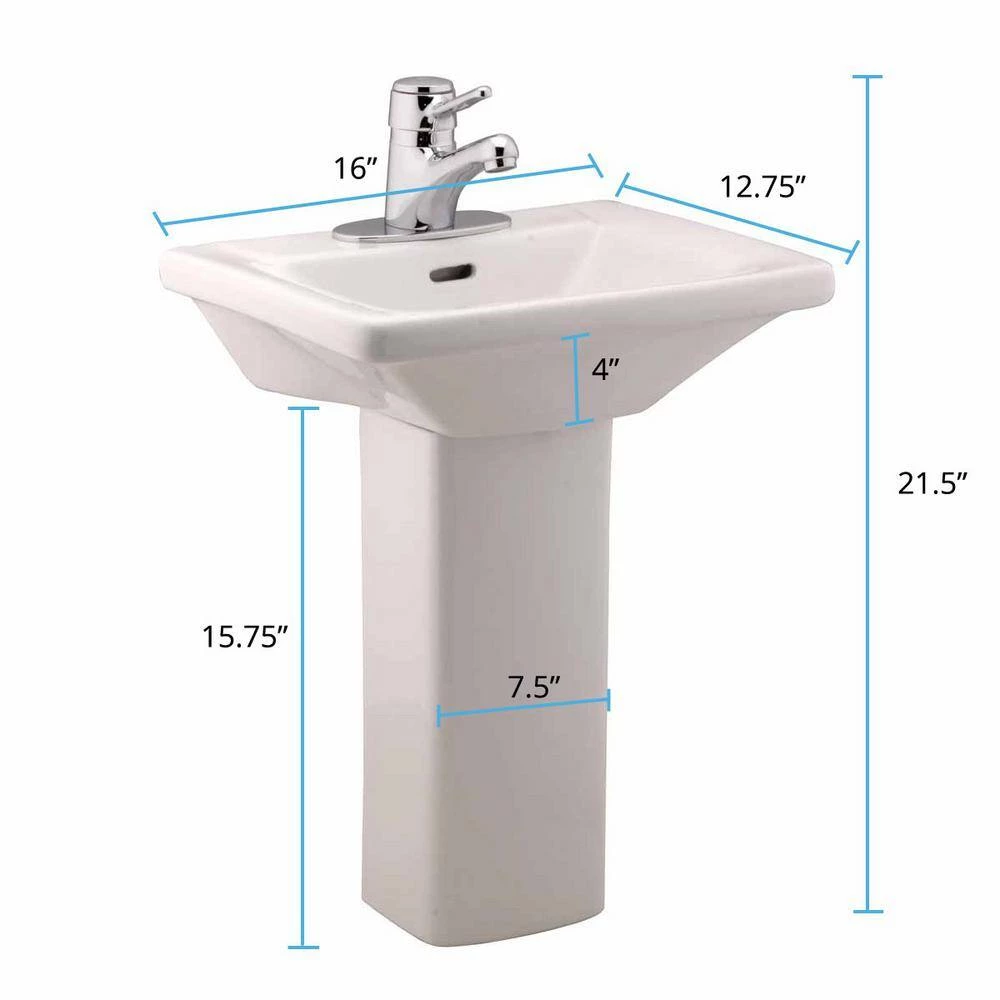 - Pedestal bathroom sink of 21-1/2 in. high x 16 in. wide x 12-3/4 in. project.