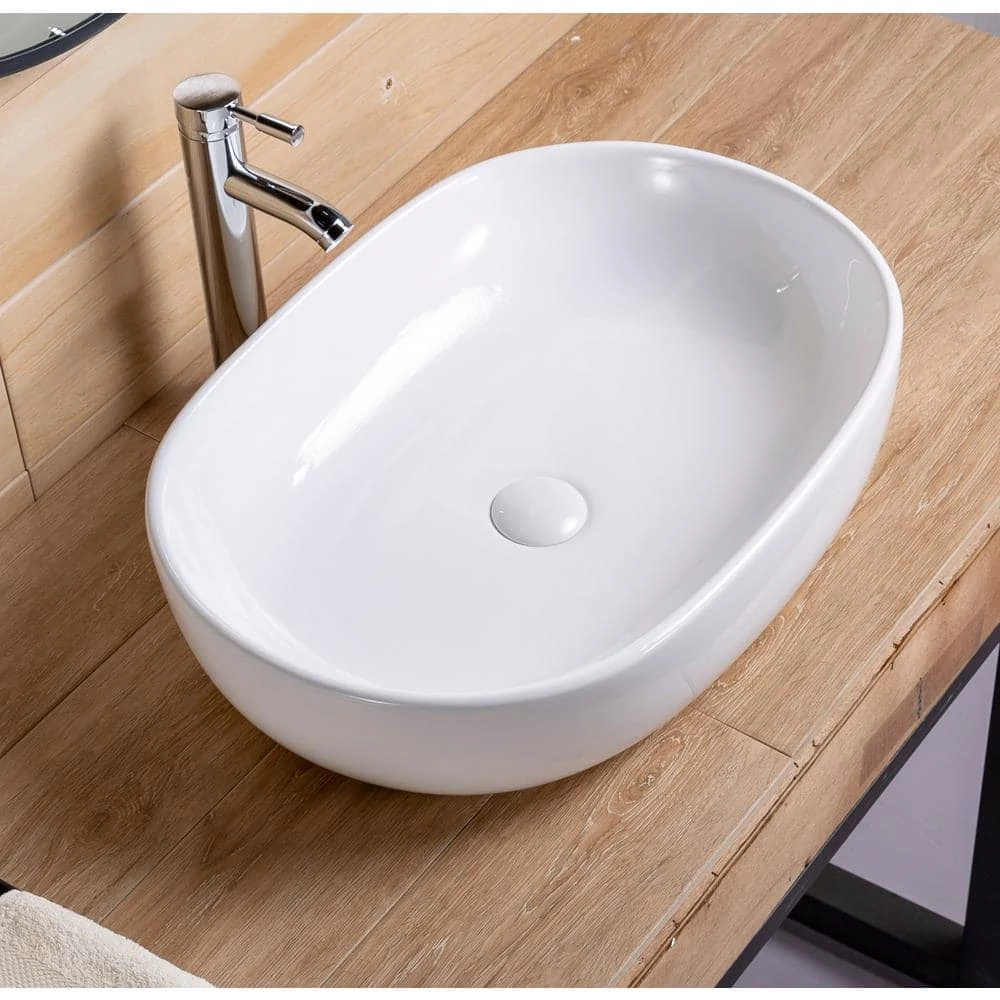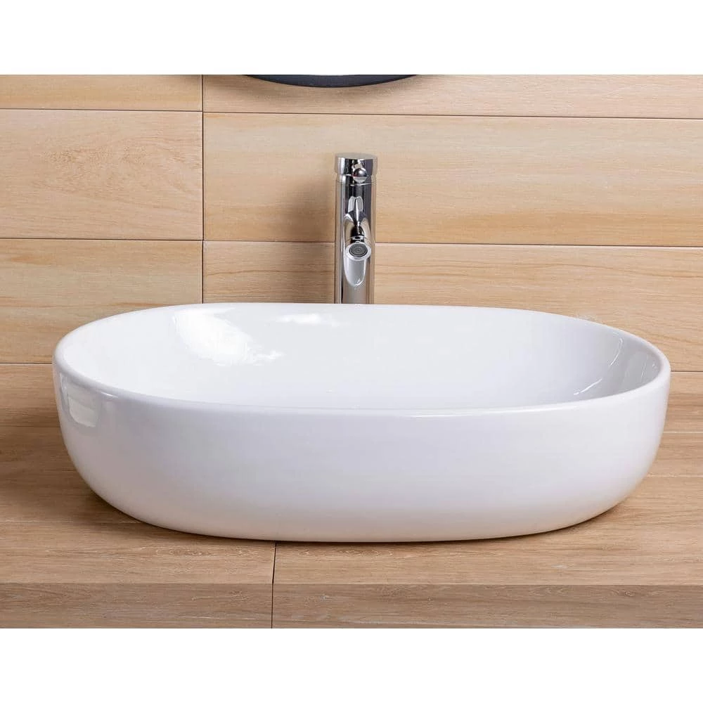 Bringing an elegant accessory to retrofit your bathroom with this white high-gloss bathroom sink. Oval capsule shape sits on the flat leveled base, stabilizes the sink from swinging around. Made from high-quality material with a sleek ultra thin edge, bringing smoothly touches and an aesthetic figure, looks beautiful and feels practical to use.