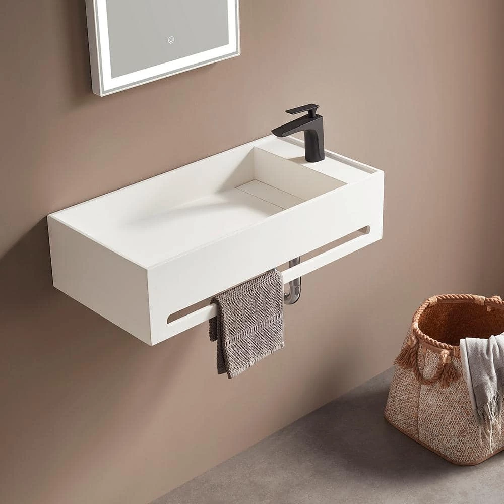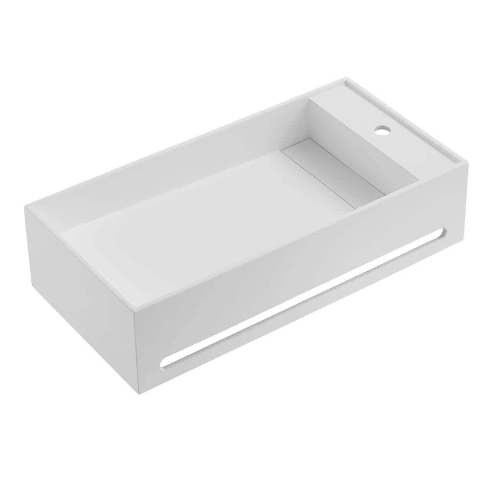 - SERENE VALLEY floating bathroom sink SVWS604-24WH is made of premium solid surface material that is specially engineered to be a non-porous surface that easily resists the stains and scratches that you hate to see on a bathroom sink