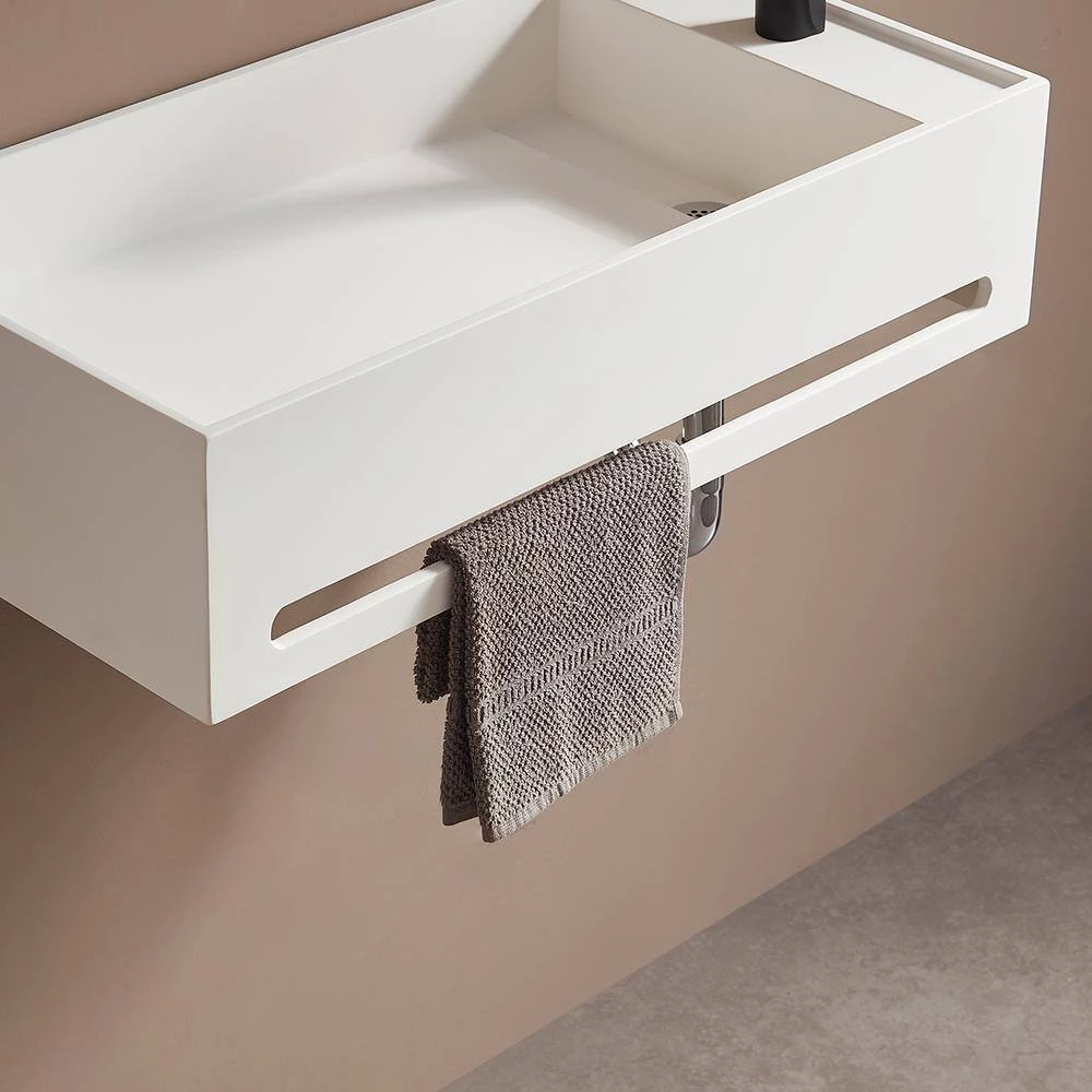 - Comes with an overall dimension 23-5/8 in. L x 13-3/4 in. W x 7-7/8 in. D and the bowl dimension 22-1/2 in. L x 12-3/4 in. W x 4-1/8 in. D, it has a hidden drain design with side faucet install, the built-in towel bar is an extra bonus that offers excellent accessibility for the towel