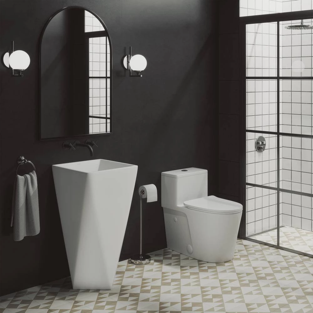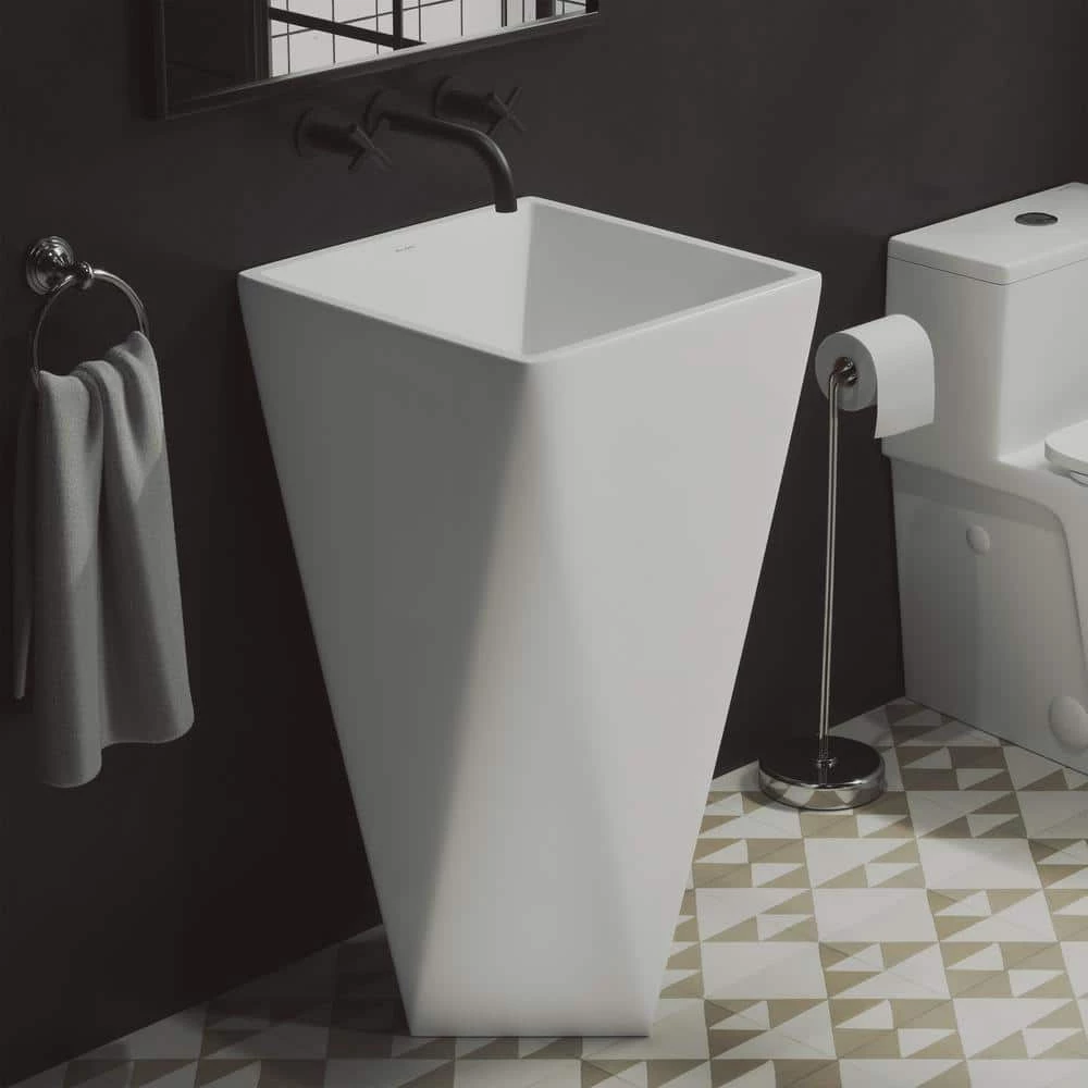 The Brusque 1-Piece Pedestal Sink has a bold, contemporary look that will elevate any bathroom setting. This easy-to-clean sink is constructed of durable ceramic for longevity. This pedestal sink features crisp edges for a sleek design.