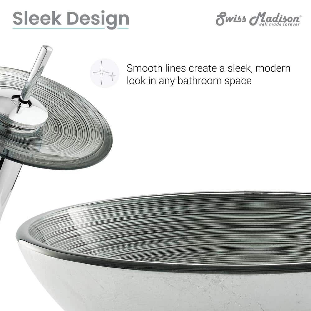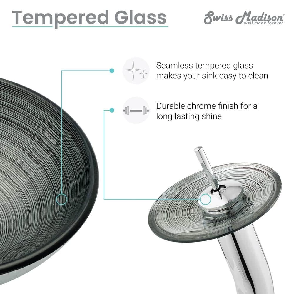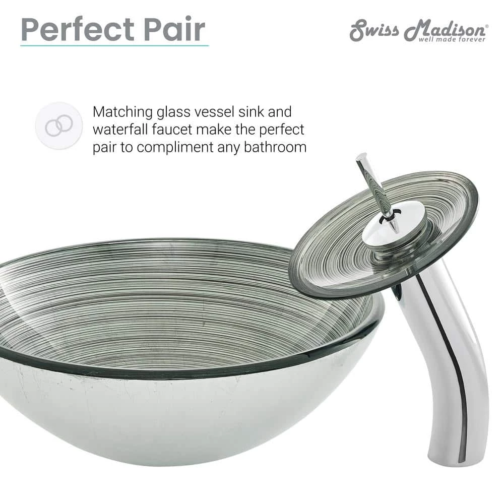 Built with precision and luxury in mind, the Cascade 16.5 in. Round Glass Vessel Bathroom Sink with waterfall faucet is stylish and elegant. Easy to use and control, this vessel sink and single-handle faucet combo was designed to complement and elevate any bathroom. The Cascade vessel sink and faucet are offered in a variety of finishes, giving you the versatility needed to enhance any modern bathroom.