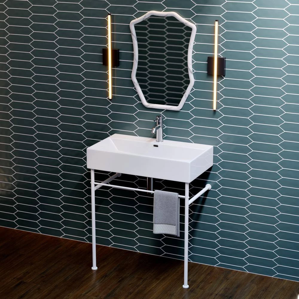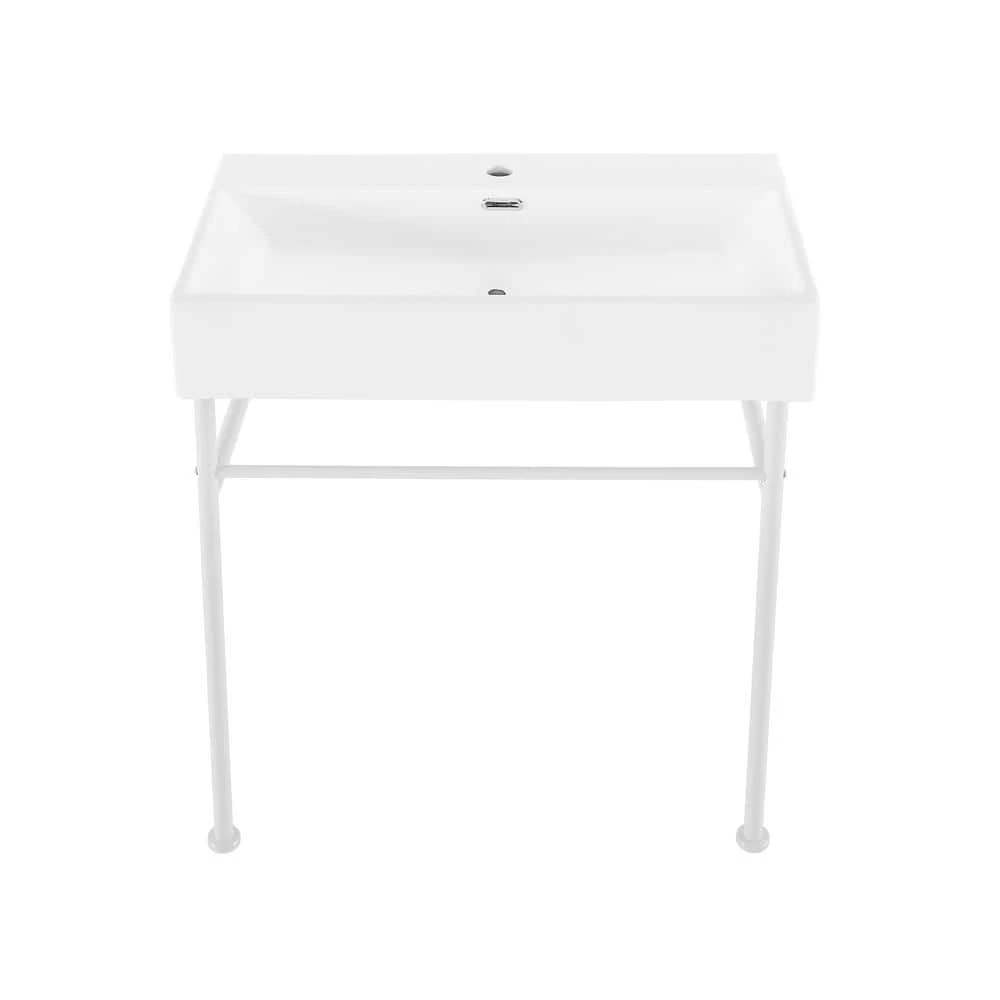 Claire console sink was designed to use minimal floor space and to make bathrooms appear more spacious. Its elongated, rectangular basin features an overflow and is ready to be paired with your favorite faucet and drain. This sink’s frame comes in a variety of finishes and includes a front bar that is perfect for hanging towels. Claire’s minimalist design will complement any bathroom.