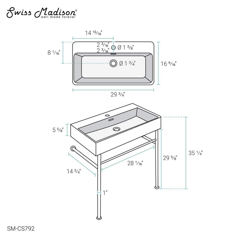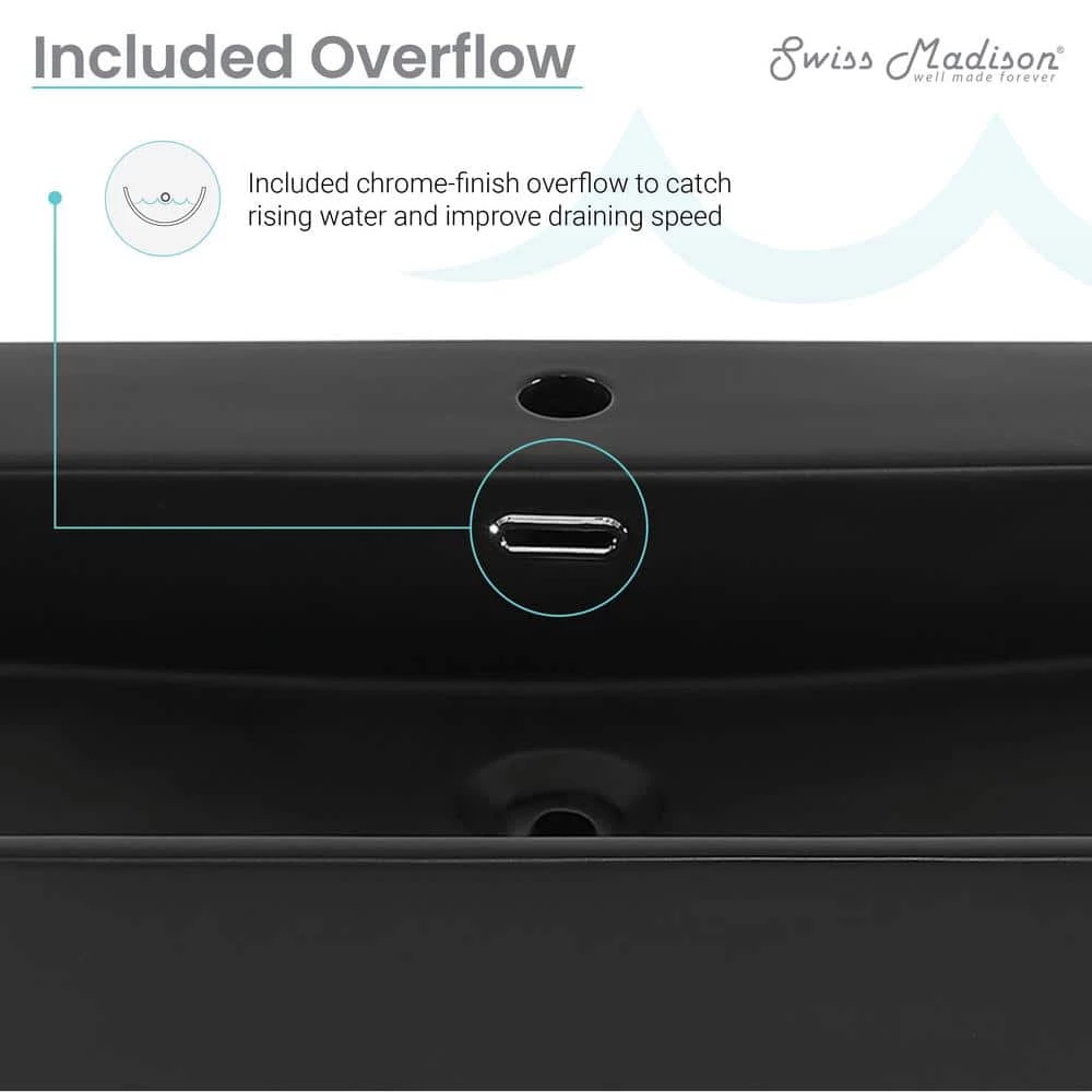 Swiss Madison Claire 30 in. Ceramic Console Sink Basin and Legs Combo in Matte Black Basin with Matte White Legs