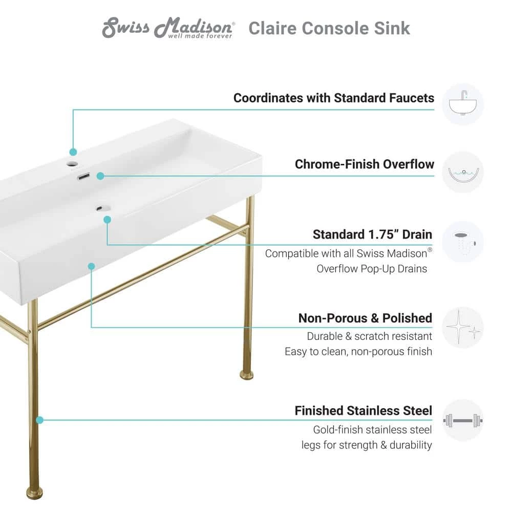 The Claire console sink ushers in your guests with a powerful and bright character. The widened washbasin offers increased ease of access. An open design makes the room appear more spacious and candid.
