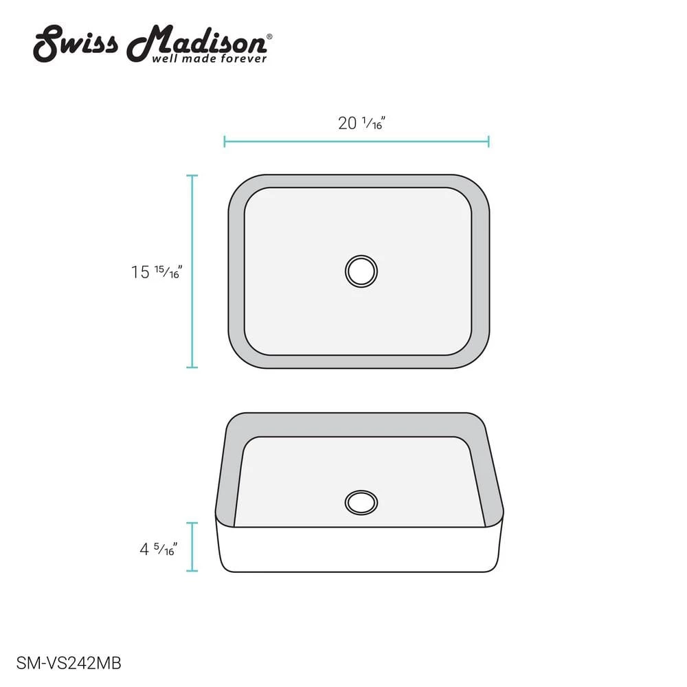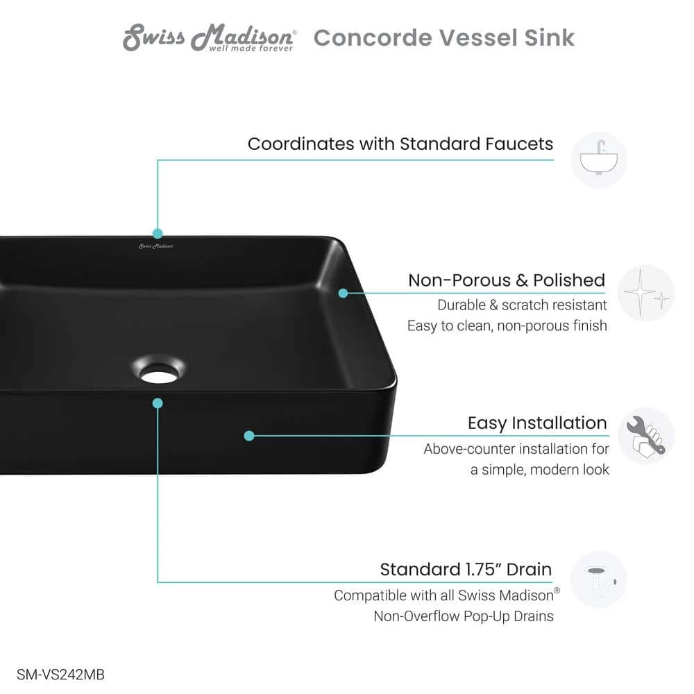 Swiss Madison Concorde Matte Black Ceramic Rectangle Vessel Sink
